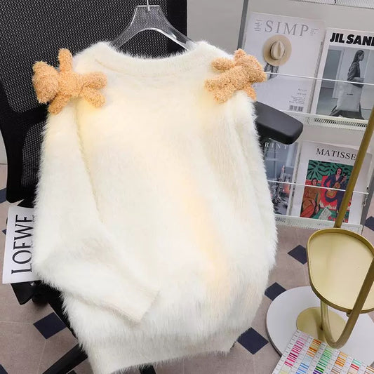 Sweet and relaxed style mink fleece sweater for women, new autumn and winter style, preppy, soft, loose and versatile pullover knitwear.