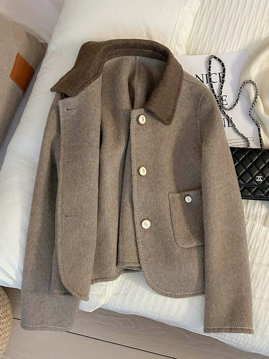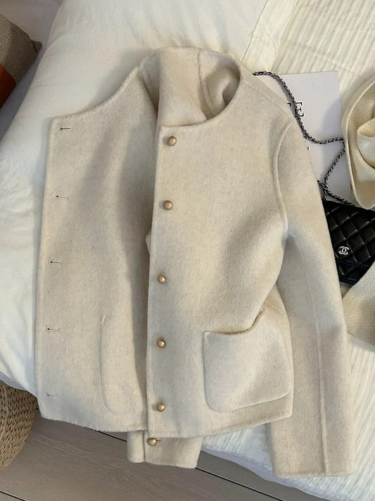2025 Autumn/Winter New Off-White Lazy Gentle 70% Wool Double-Faced Short Coat for Petite Women