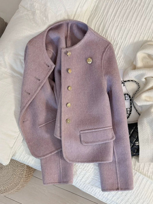 2025 Autumn/Winter New Arrival: Gentle and Sweet Purple Double-Sided Wool Short Jacket, Chanel-Style Fashionable Top for Women