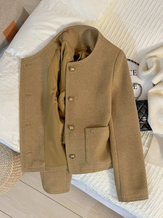 80% Wool Double-Faced Tweed Brown Elegant Short Jacket for Women, 2025 Autumn/Winter New Style, Stylish and Versatile Top