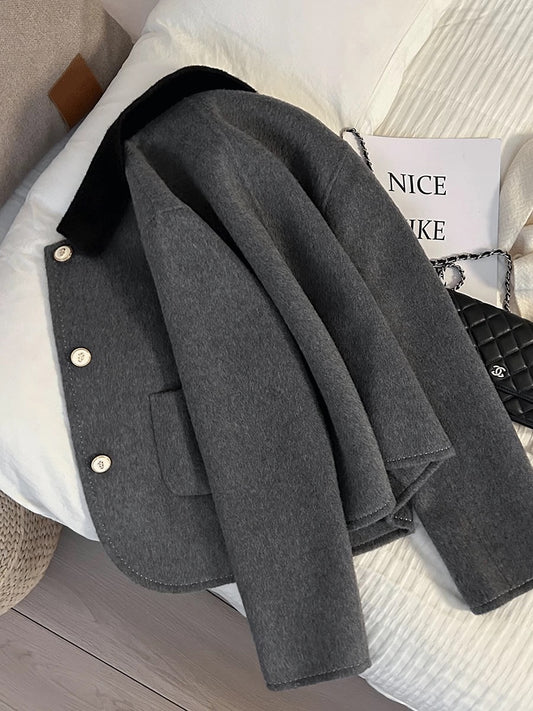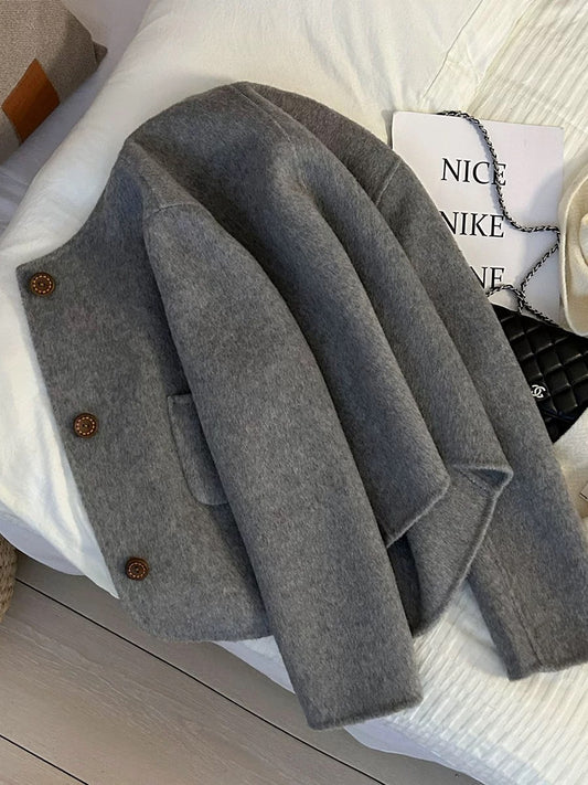 Women's 70% Wool Double-Faced Short Coat, 2025 Autumn/Winter New Style, High-Grade Gray, Fashionable and Flattering Cashmere Top
