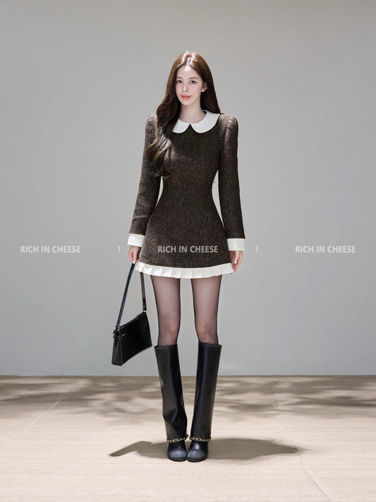 Shu Hulei, a returned noblewoman, V-neck tie-waist Chanel-style knitted dress, slimming pleated skirt.