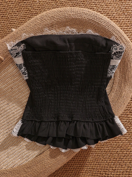 Tongiiuu Midsummer Romance Heavy-duty Lace-trimmed Off-Shoulder Dress Women's Slimming A-line Cake Skirt Summer