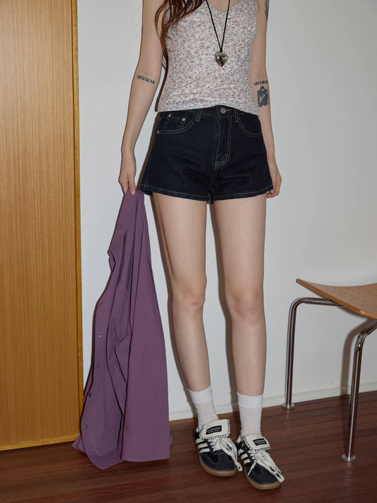 Chaochao's Sweet and Cool Style Dark Blue High-Waisted Denim Shorts Women's 2026 Summer Slim Fit A-Line Hot Pants