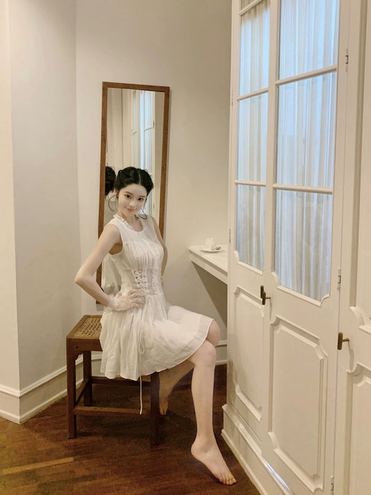 Syeee's "Starry Night" White Shimmering Pleated Halter Neck Sleeveless Dress - Summer Ethereal and High-End Dress