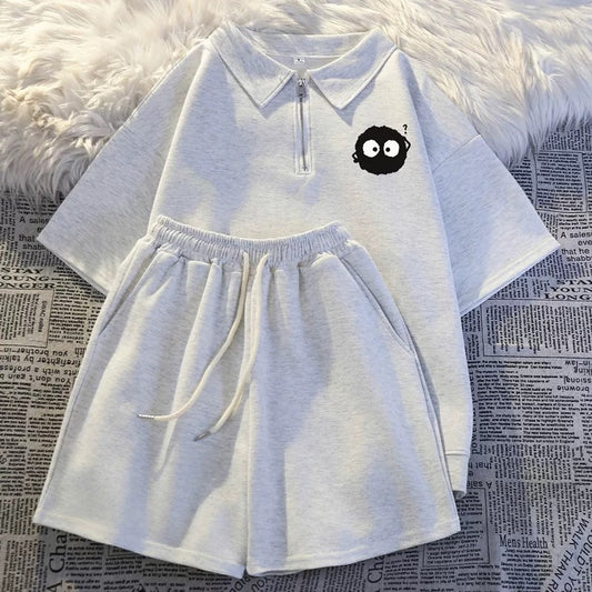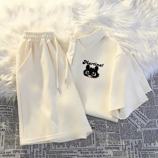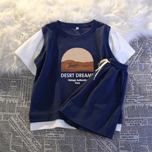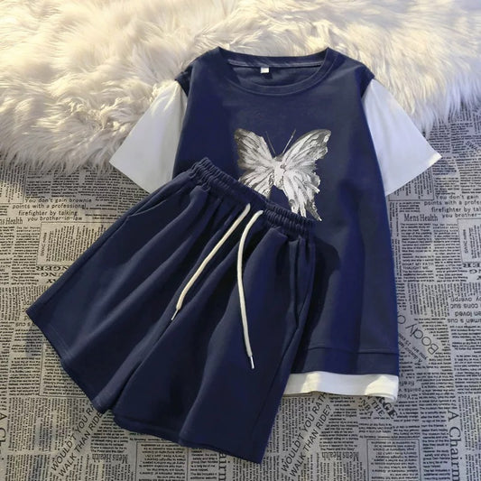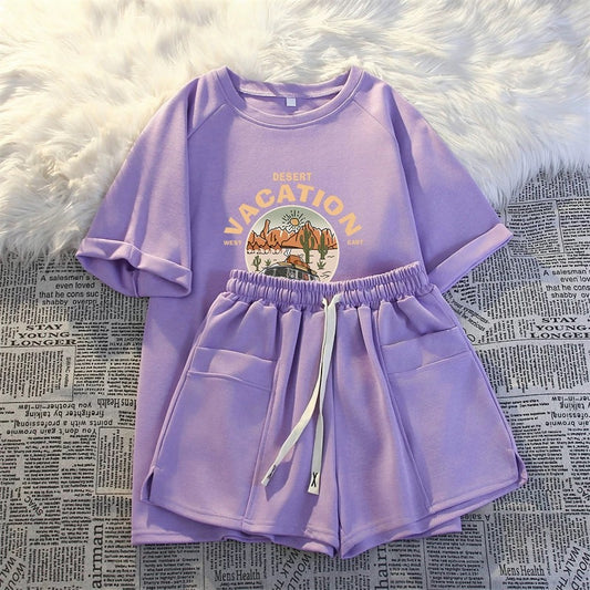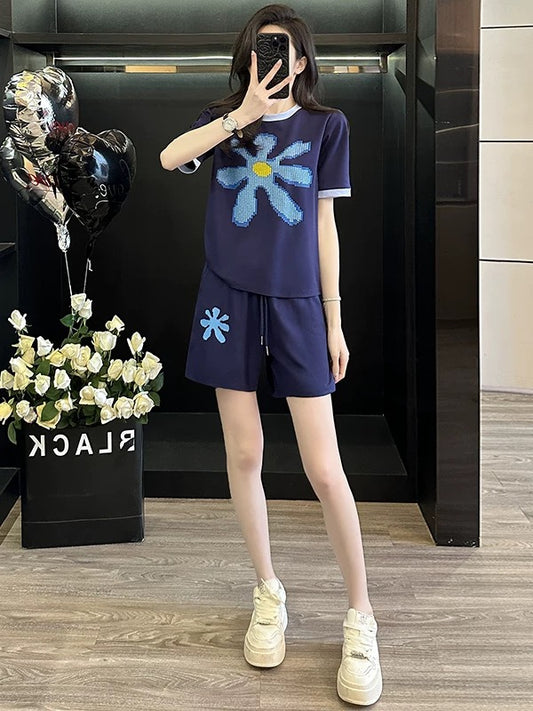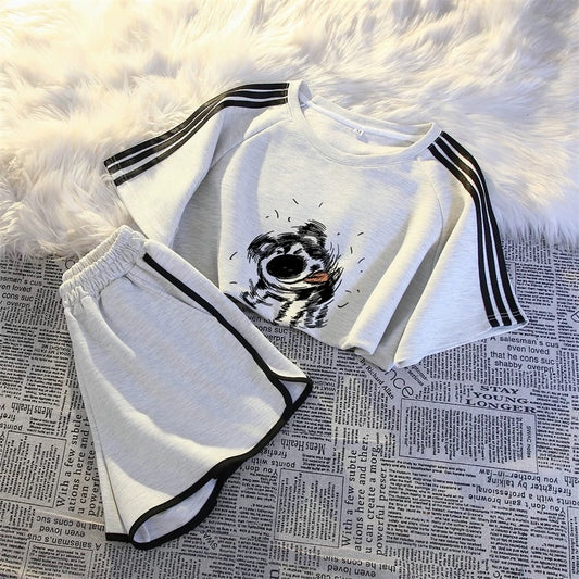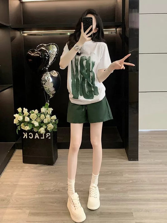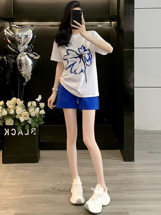 Fashionable and stylish printed short-sleeved suit for women in summer 2025 casual sports shorts two-piece suit loose and slim running clothes