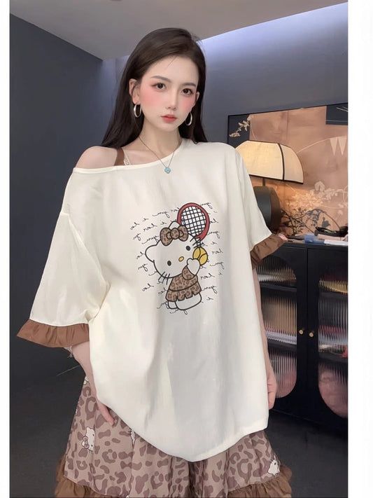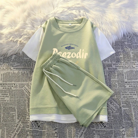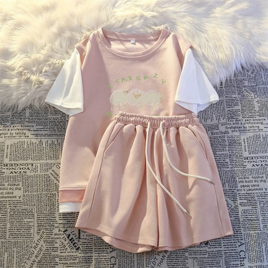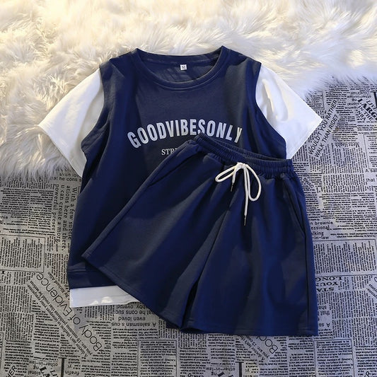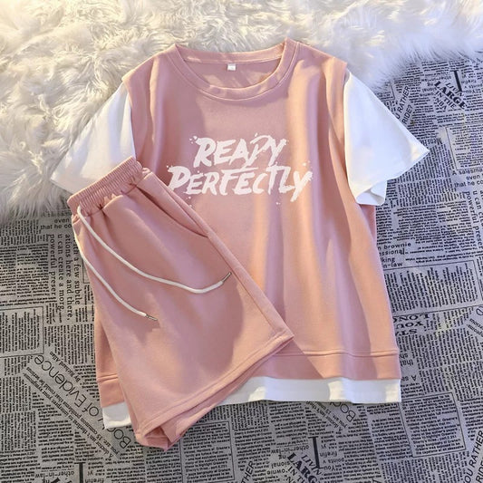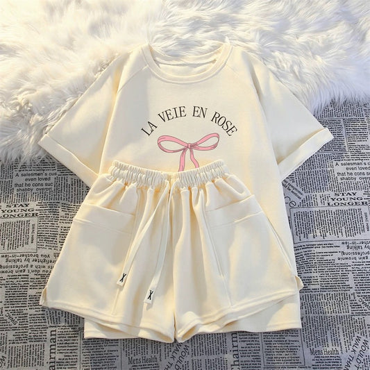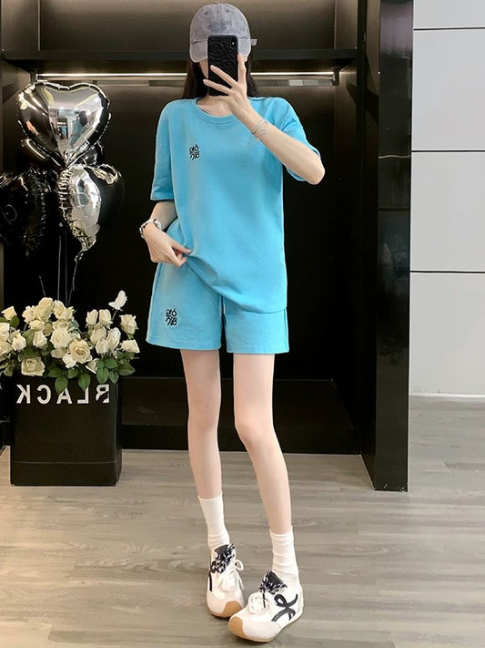 2025 Summer lazy style casual sports suit for women, fashionable, age-reducing and slimming short-sleeved T-shirt and shorts two-piece suit