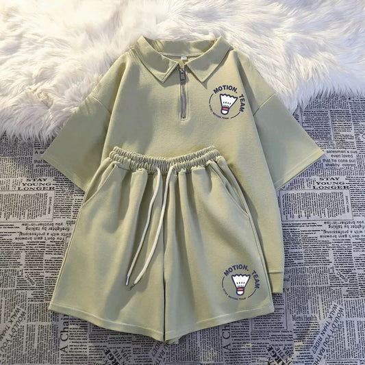 Western style fashion sports suit women summer 2025 Korean version V-neck short-sleeved shorts two-piece suit casual ins trend running