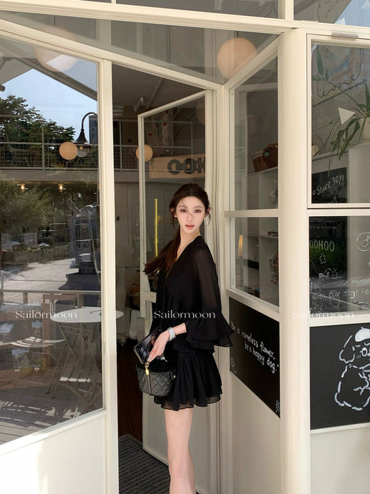 2025 Autumn New Korean Style Fashionable and Elegant Versatile Slimming Long-Sleeved Shirt + High-Waisted Skirt Two-Piece Set for Women
