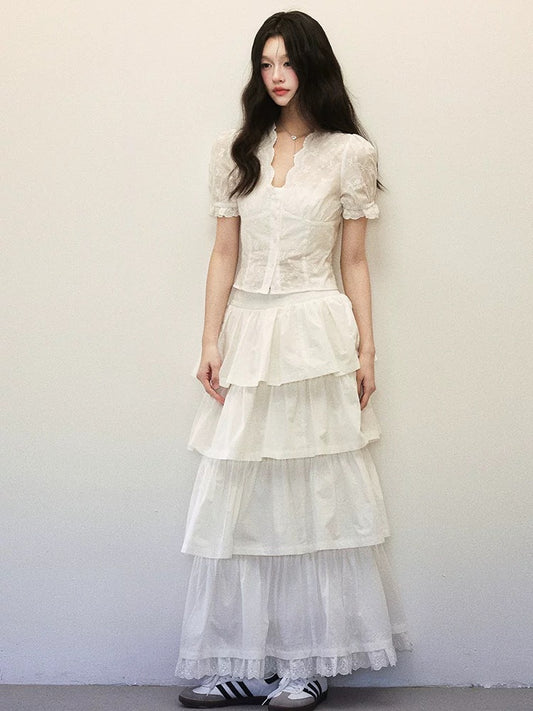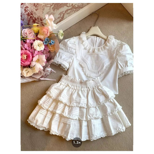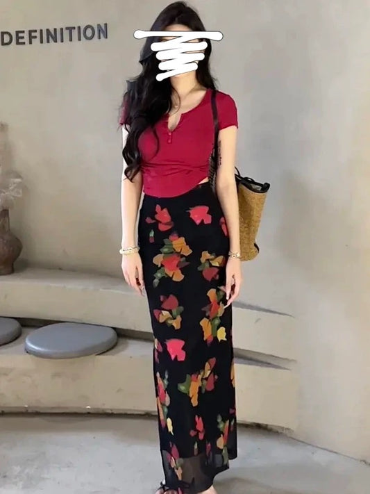 MIUCO designer floral skirt suit ruffled shirt skirt wrap-style skirt temperament layered two-piece suit