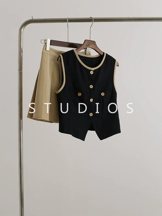 Korean style lace faux two-piece camisole top and wide-leg pants set for women, a sophisticated and youthful summer fashion set for early autumn.