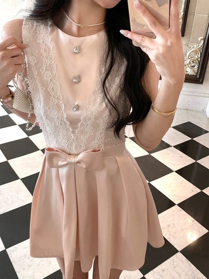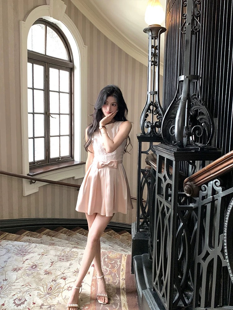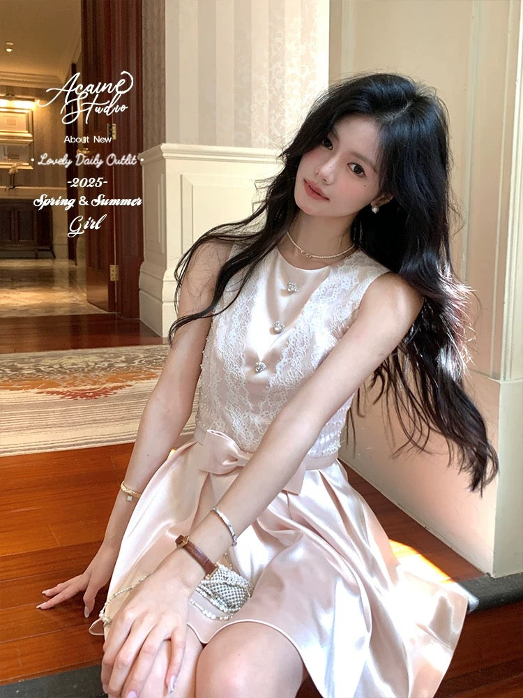 Acaine second-hand Monica/medium-length gentle thousand-gold lace satin dress female summer French skirt