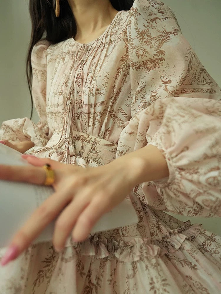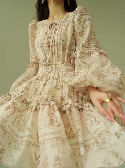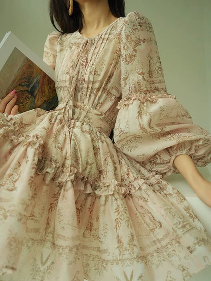 Aconiconi|Shanheyun Sweet French Print Art Retro Niche Girl Shirt Short Skirt Set