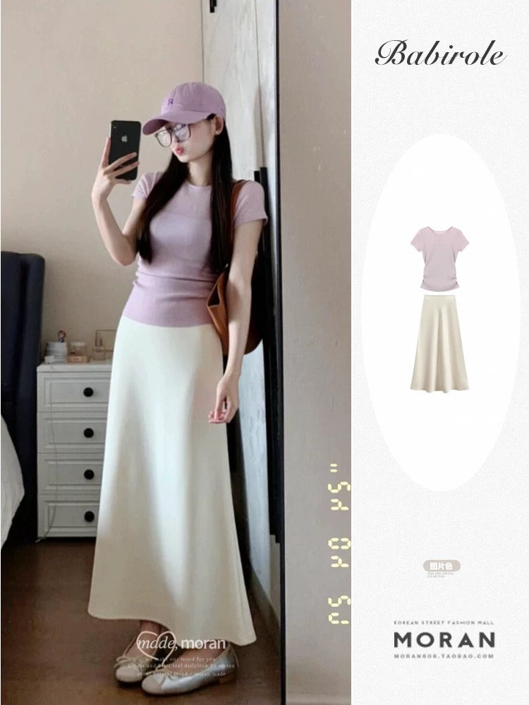 Age-reducing outfit with a complete set of summer clothes for pear-shaped body Korean style atmosphere outfit Salty style street-blasting two-piece suit for women