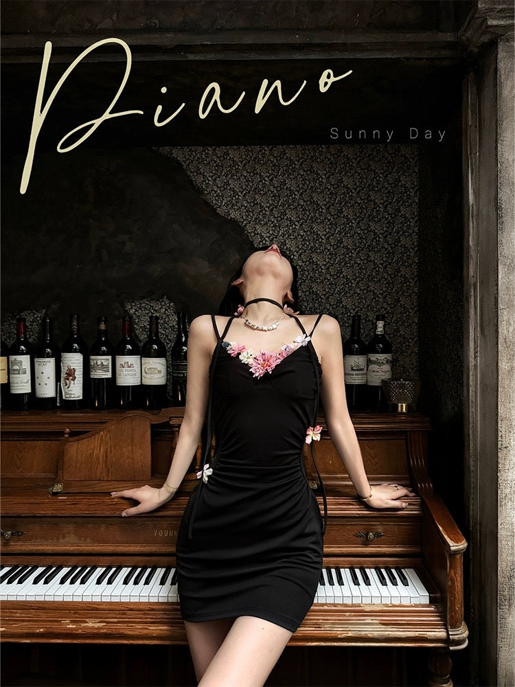Aunt Barbie's holiday style suspender dress for women new summer French pure lust hot girl flower halter neck hip skirt