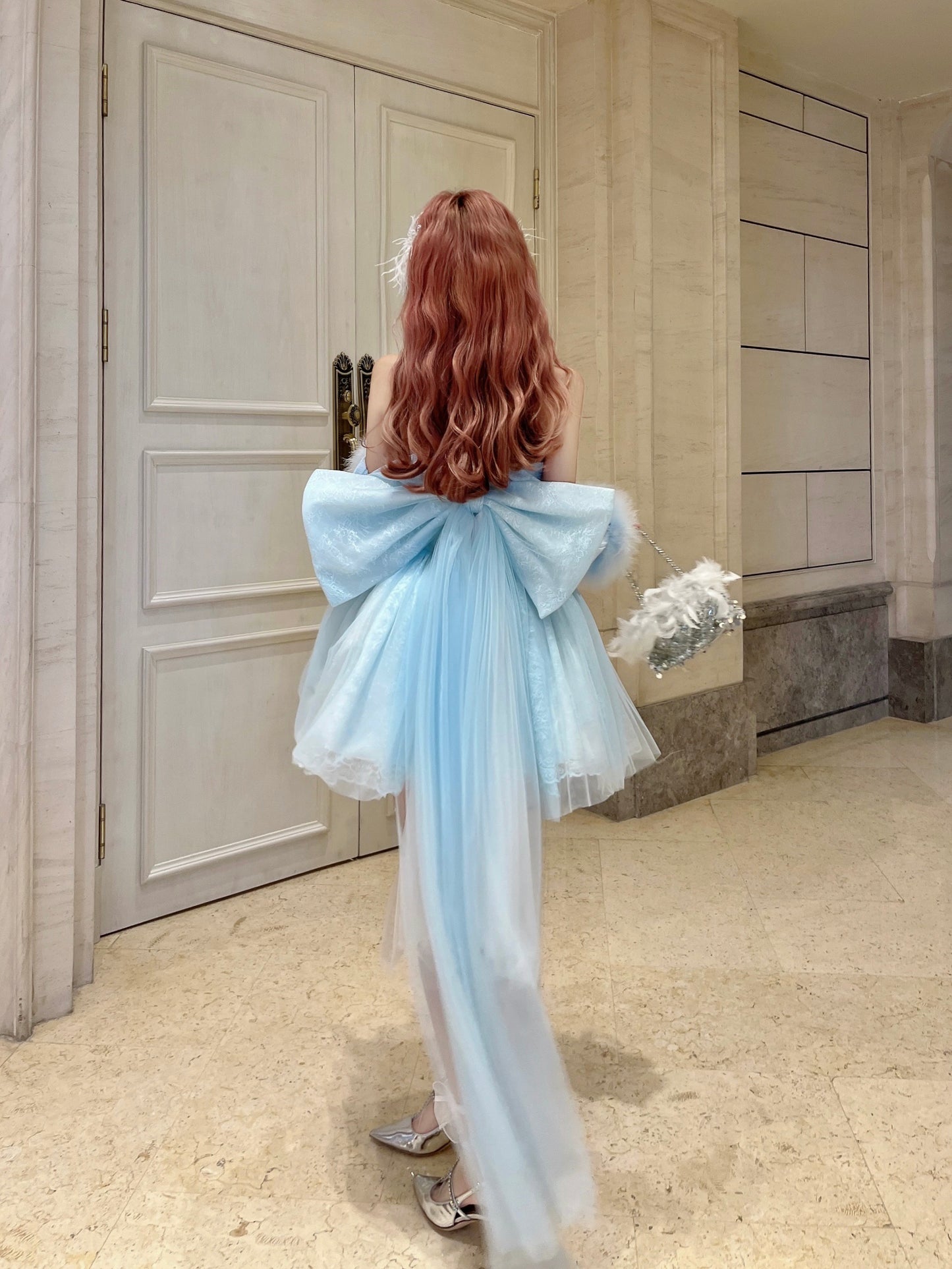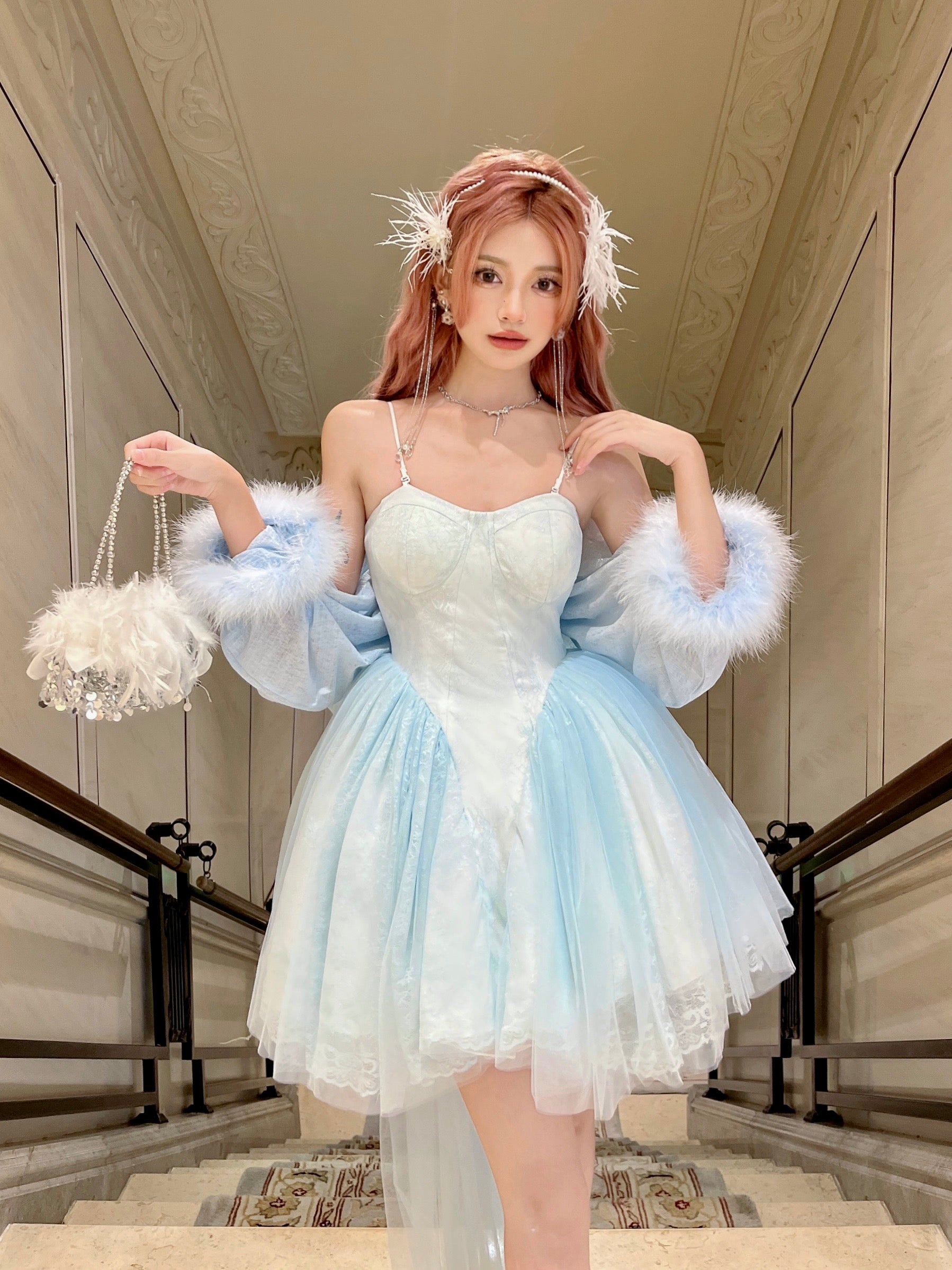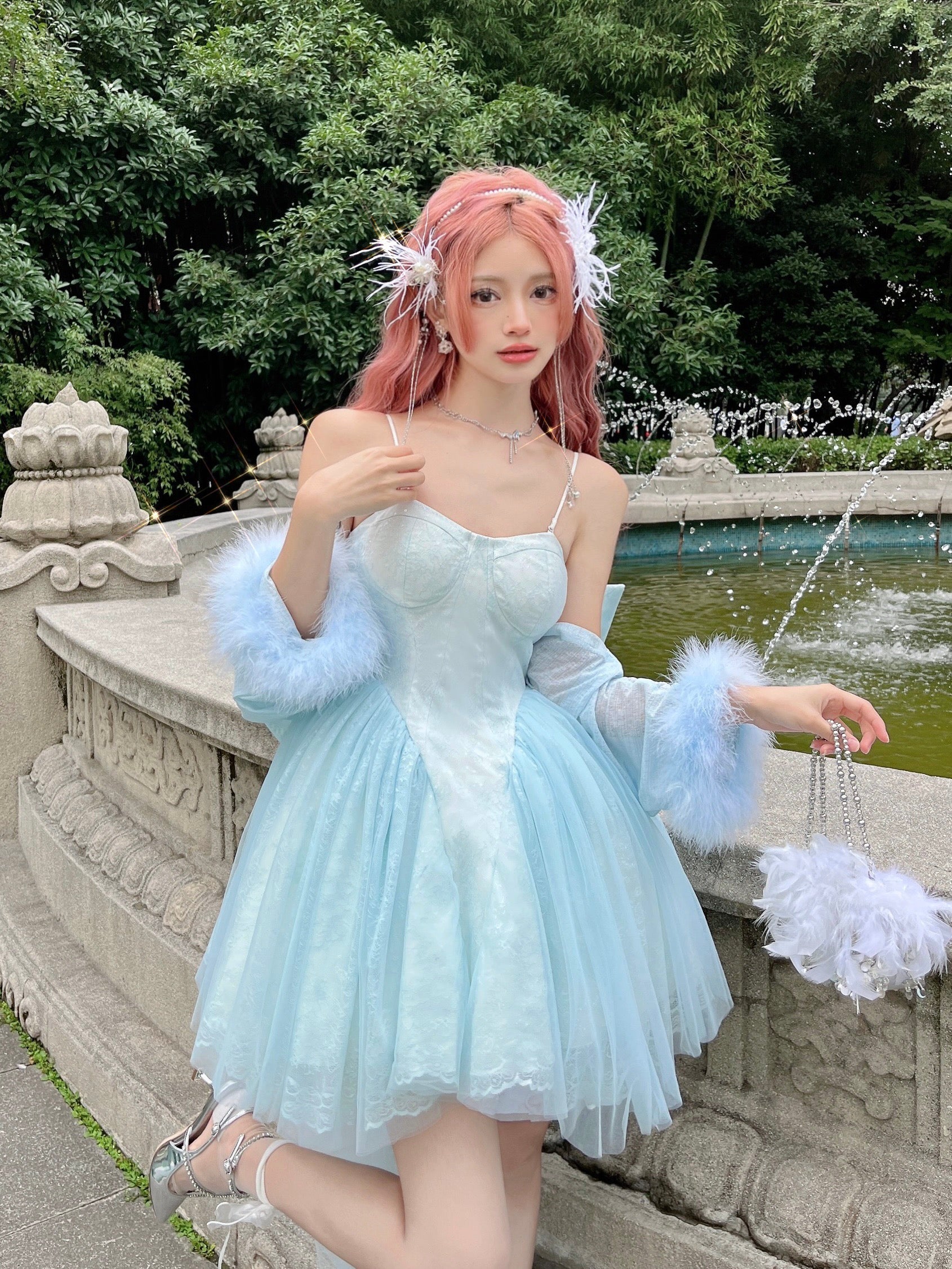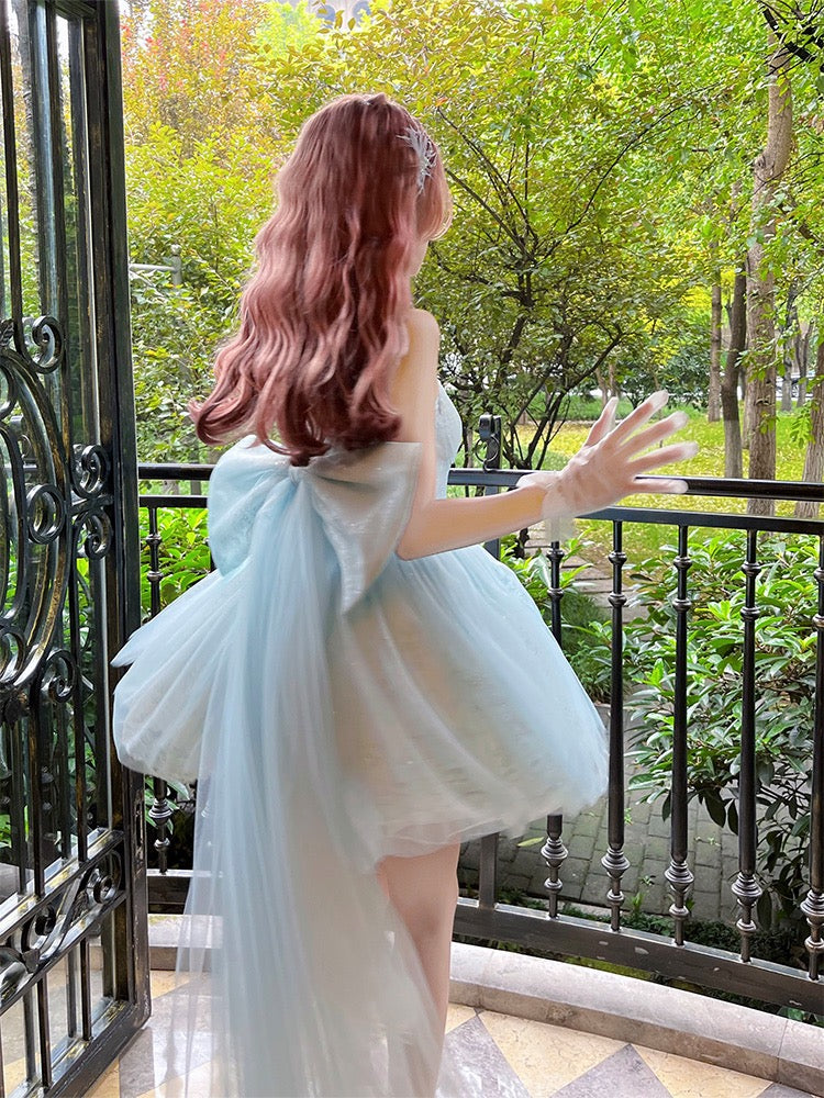 Ballet princess birthday party small dress high-end sense order niche blue sexy sling tube top dress female