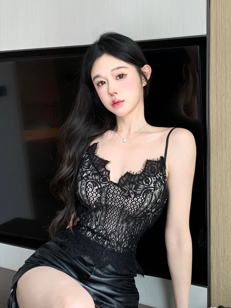 Black beautiful back lace camisole women's summer sexy bottoming shirt halter back short section inner top outerwear