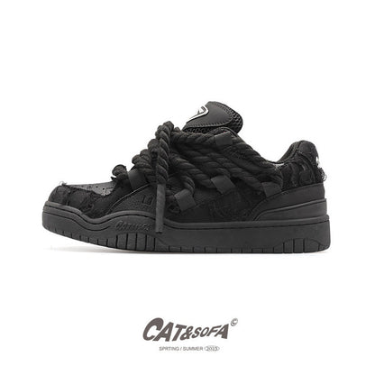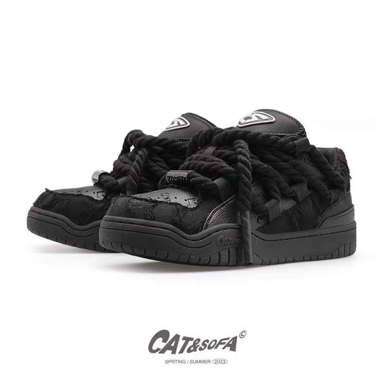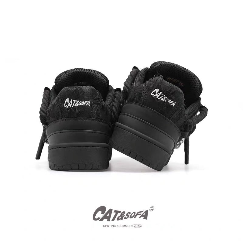 Cat and Sofa Black Destruction Lace/Original Design New Skateboard Shoes Couple Casual Sports Skateboard Shoes Trend
