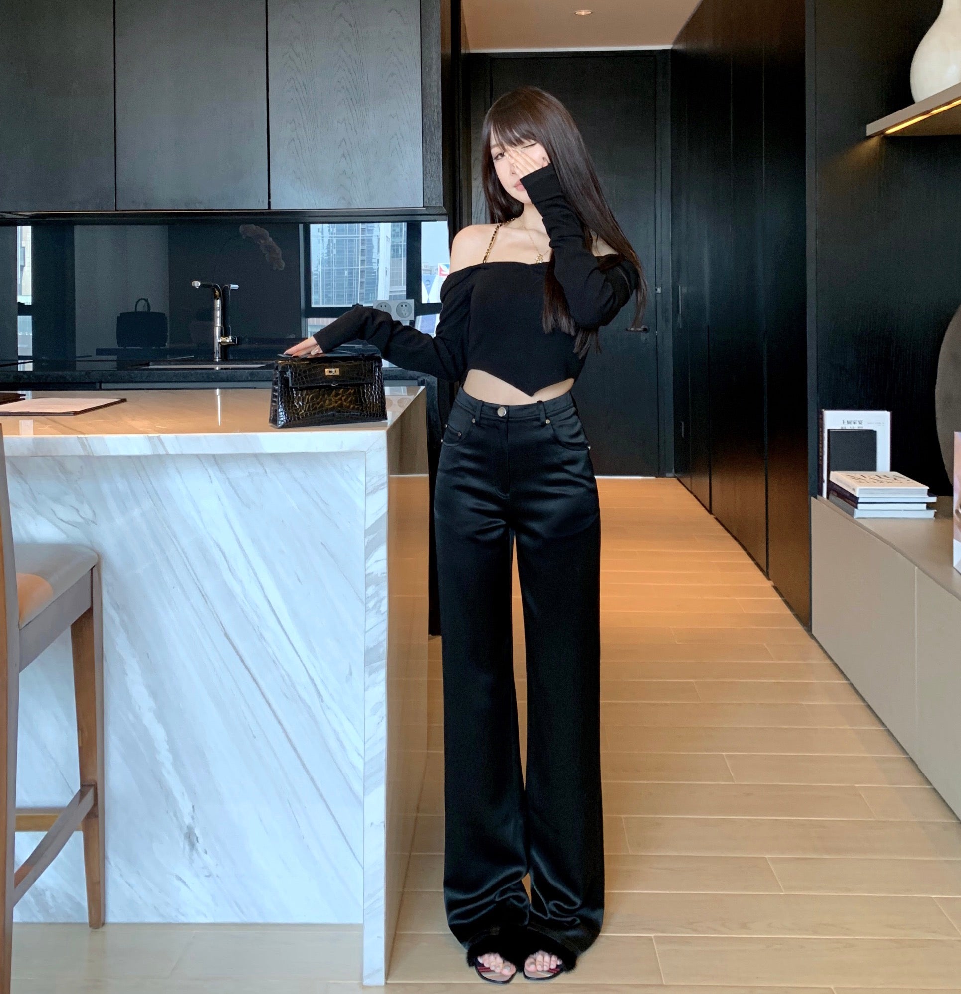 CHICYOU Lux Series 72% Real Acetic Acid Premium Milk Comfortable Versatile Straight Leg Pants Casual Slim Pants