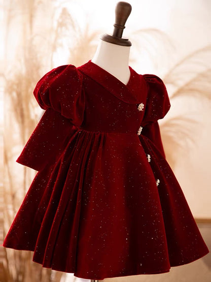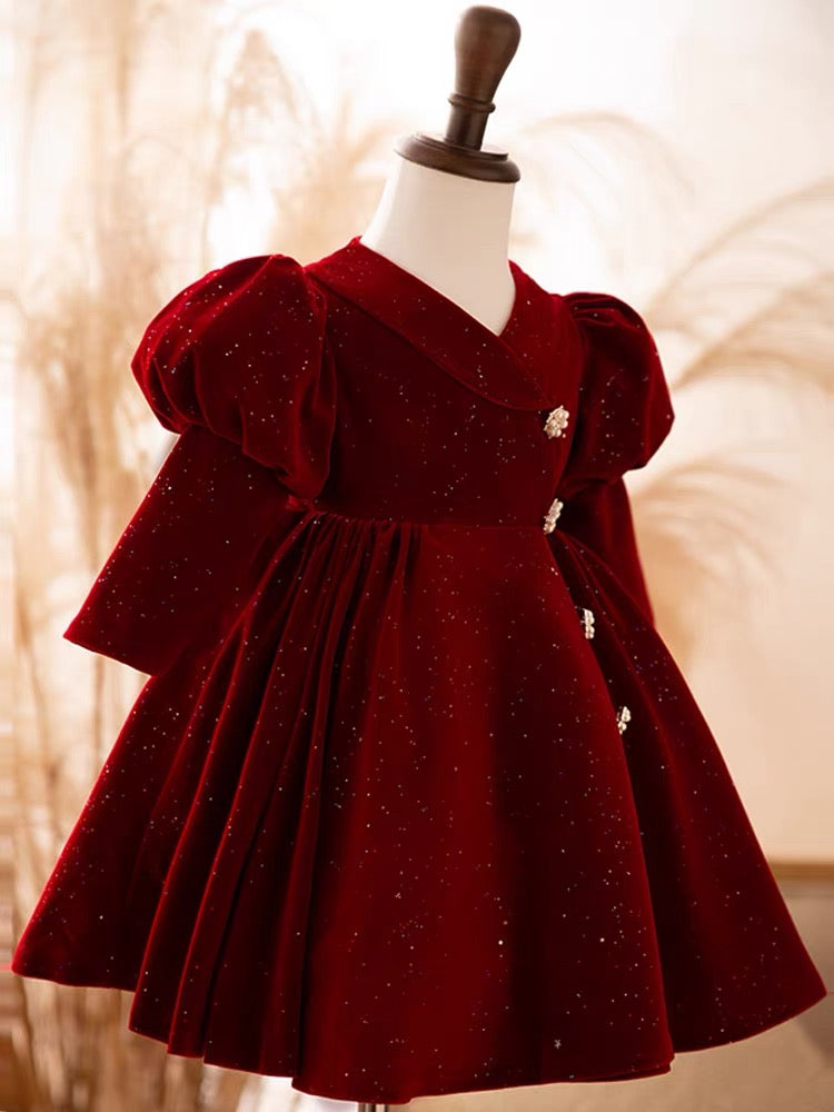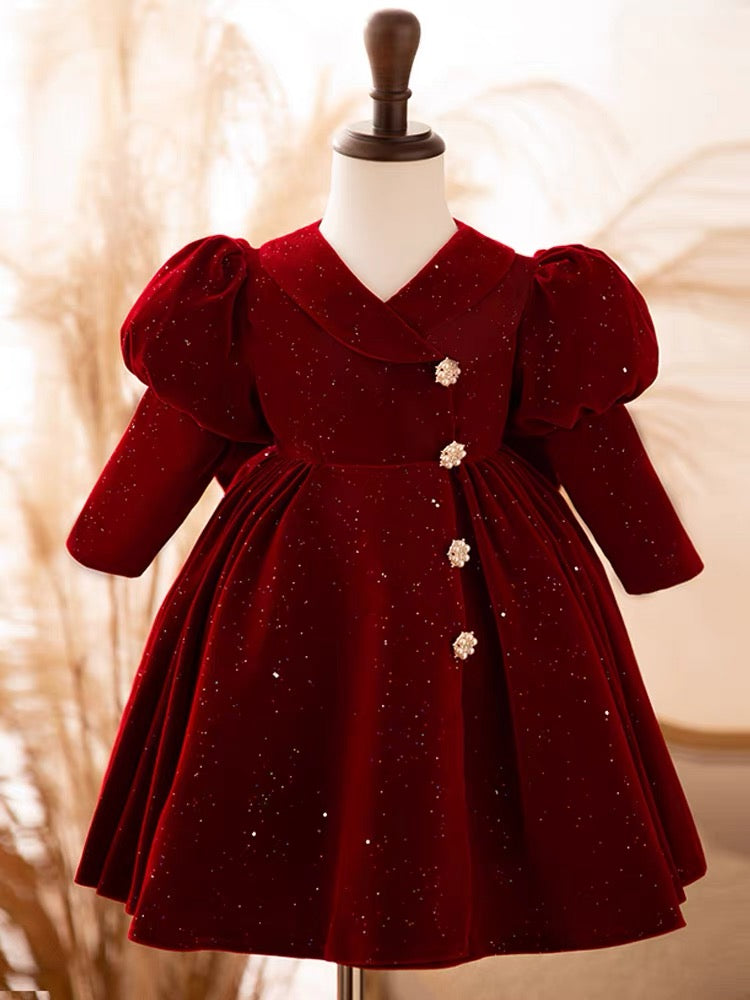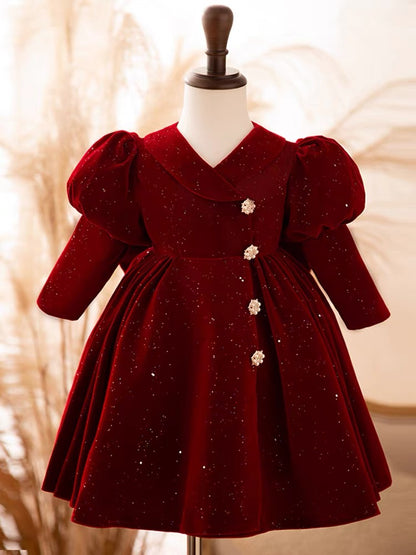 Children's one-year-old banquet baby girl's birthday catch week dress girl princess dress red high-end flower girl winter long-sleeved