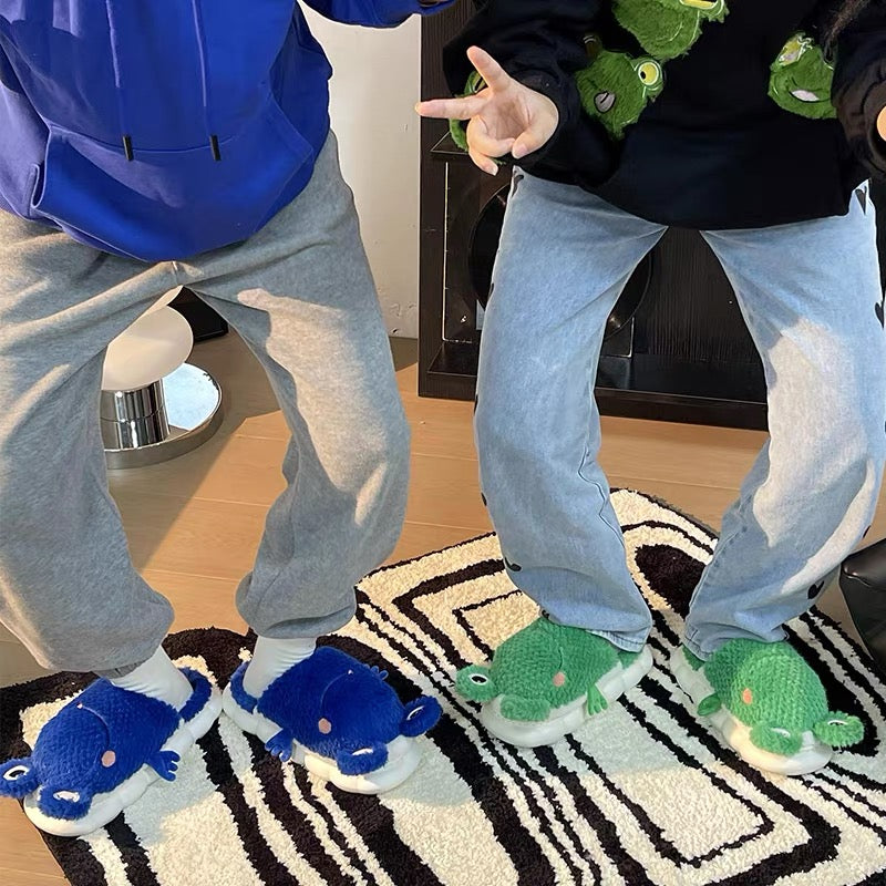 Cute cartoon cotton slippers men and women couples autumn and winter home indoor thick bottom non-slip warm cotton shoes confinement shoes winter
