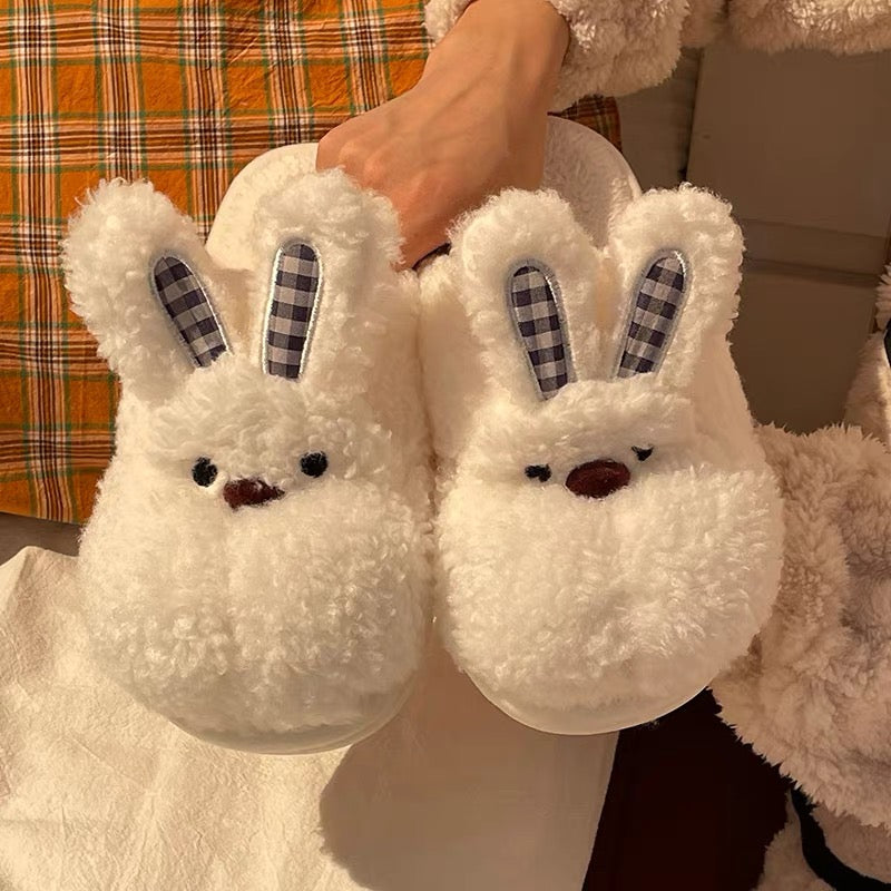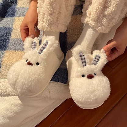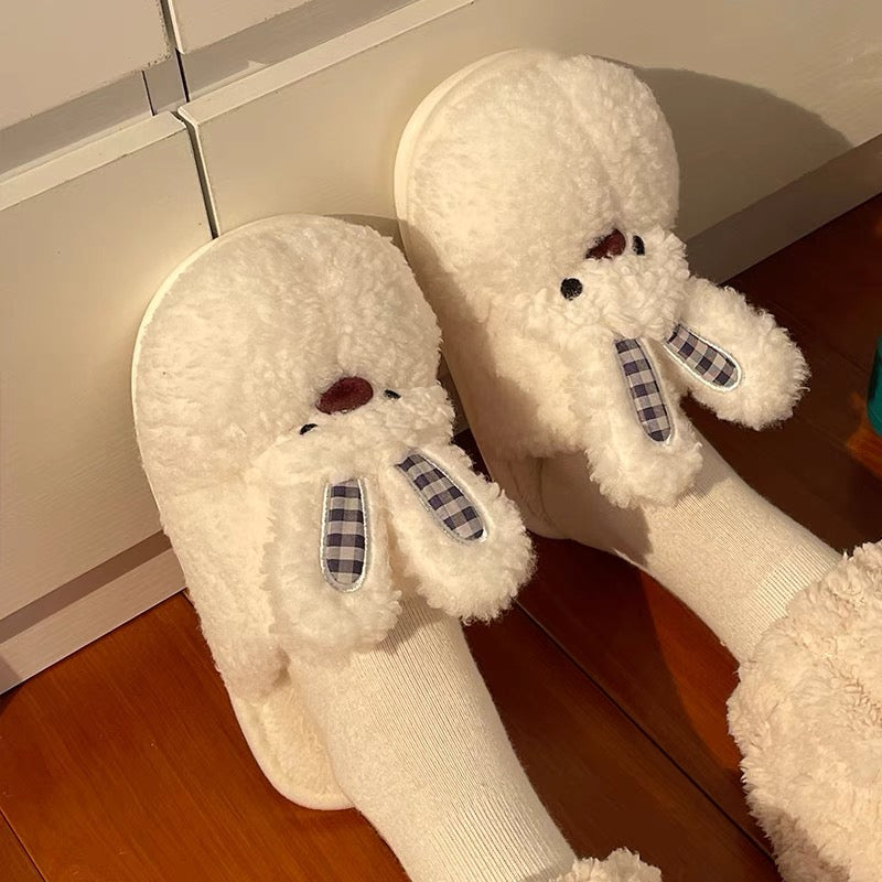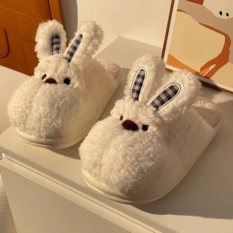 Cute rabbit cotton slippers ladies winter home indoor plush warm cotton slippers men's couple winter models