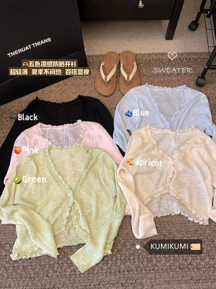Designed thin pink sunscreen knitted cardigan jacket for women in summer niche loose short outer blouse top