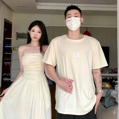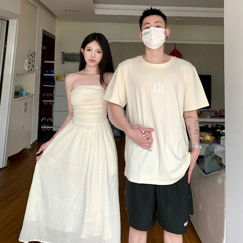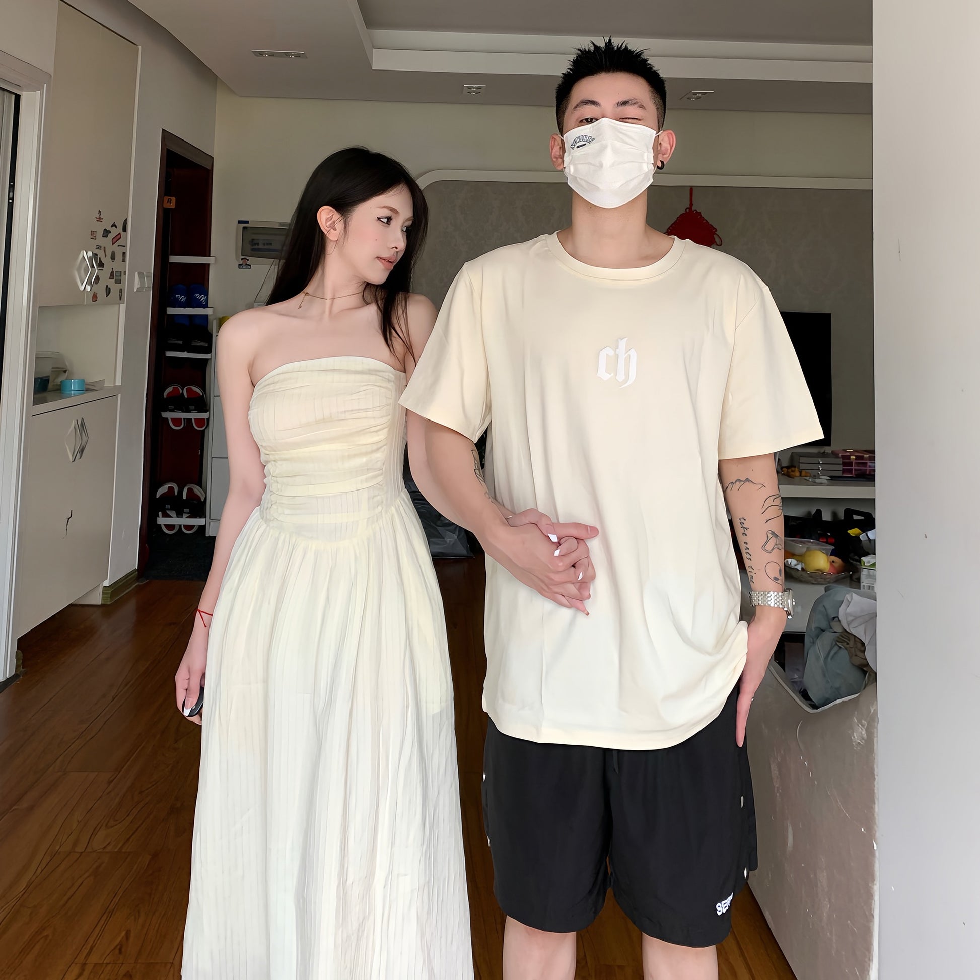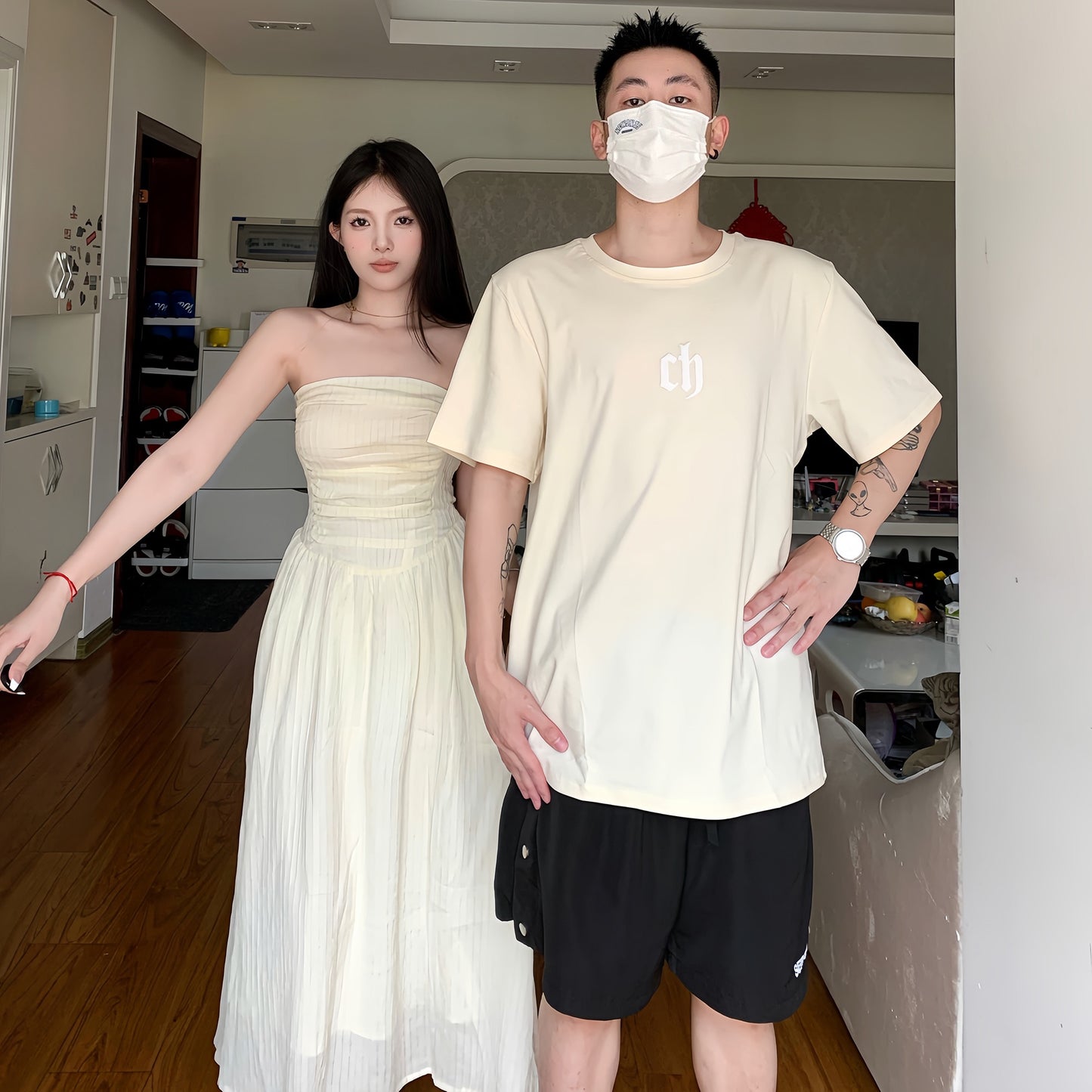 Different couple clothes summer clothes 2023 new short-sleeved T-shirt women's tube top waist dress one skirt one clothes tide