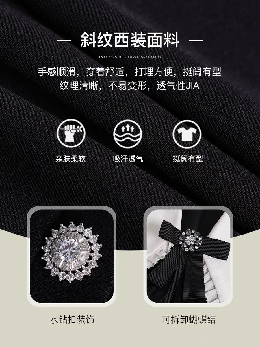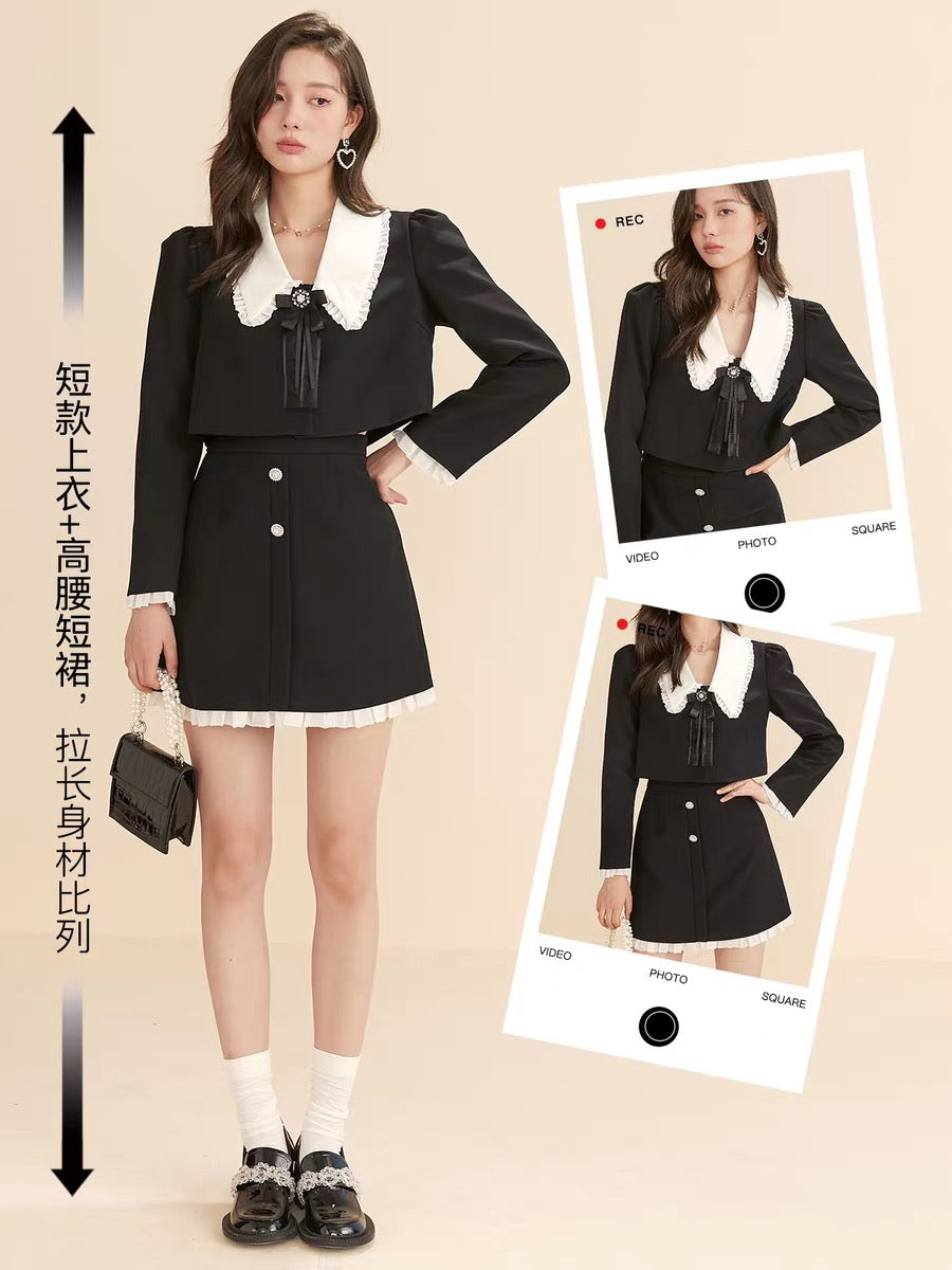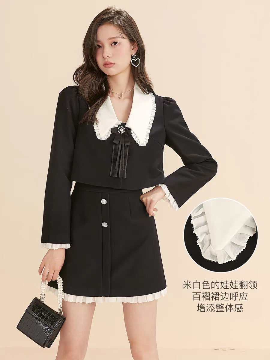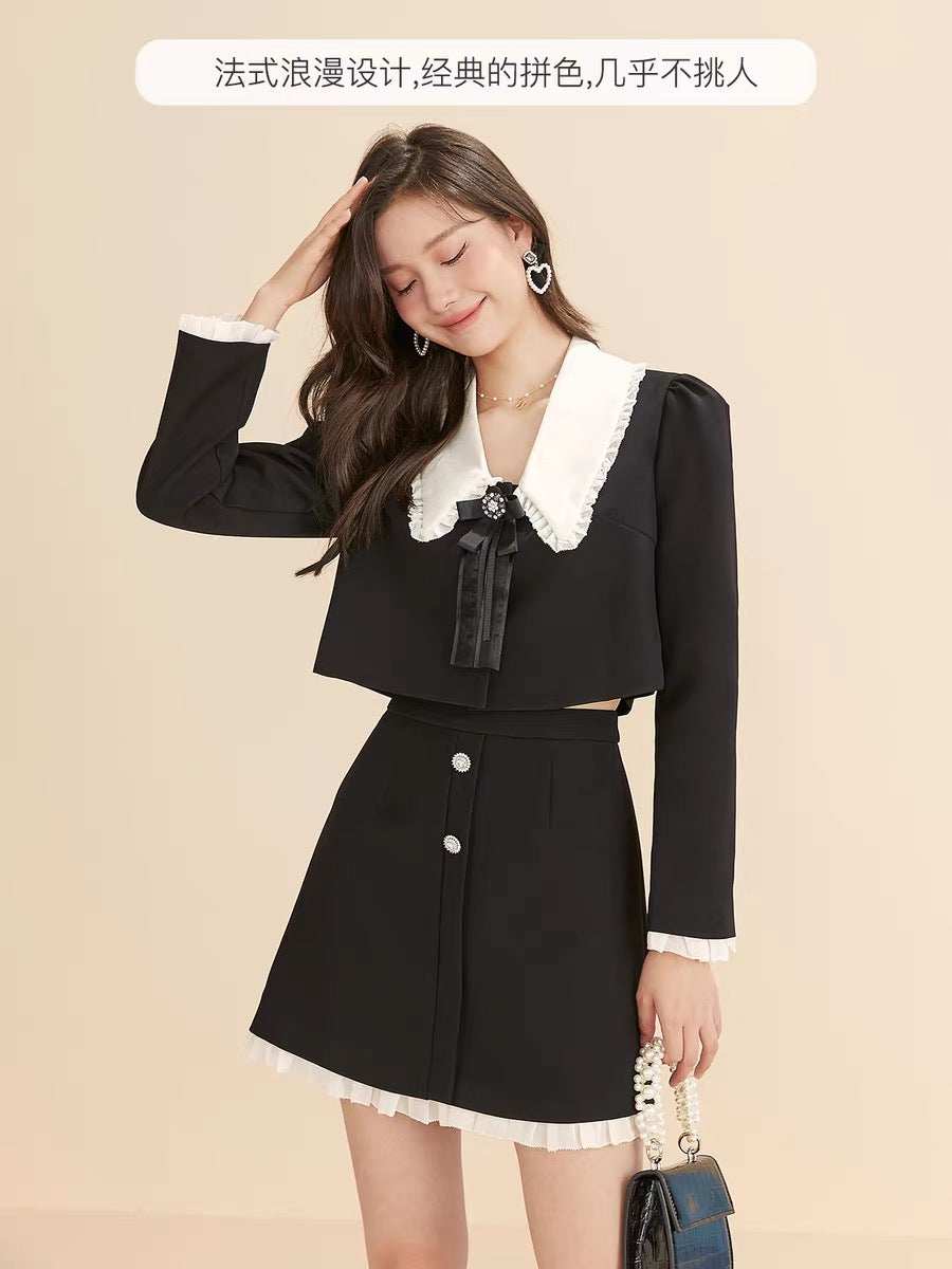 Fantu 2022 autumn new doll collar contrast color stitching two-piece French waist slim fashion suit women