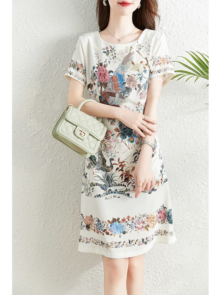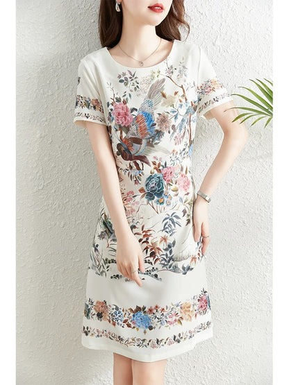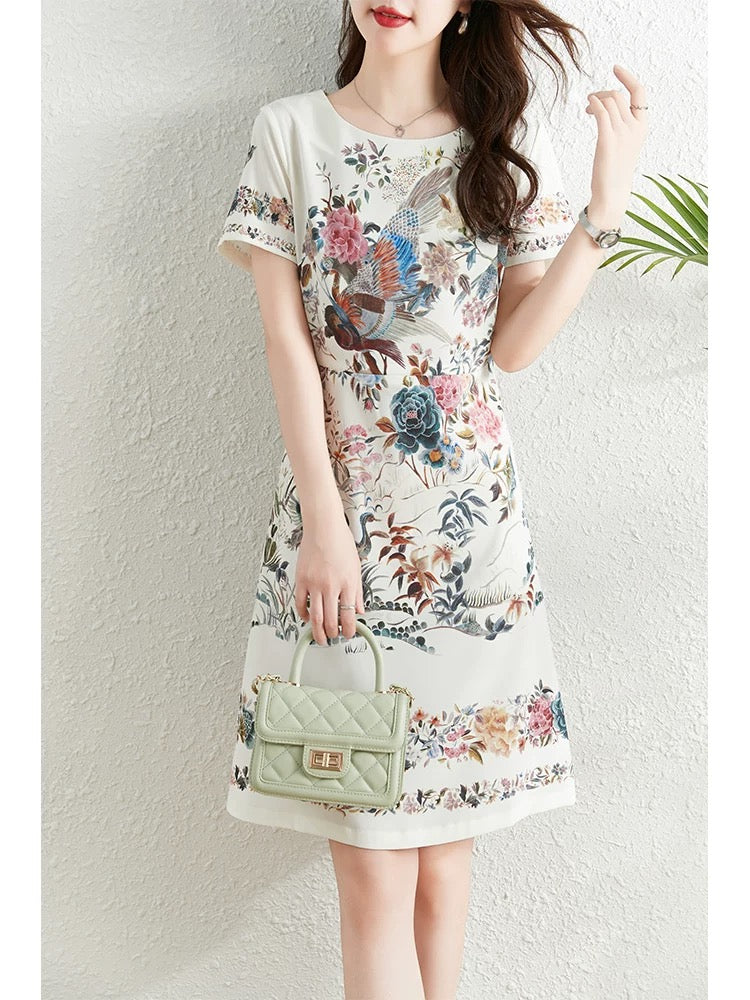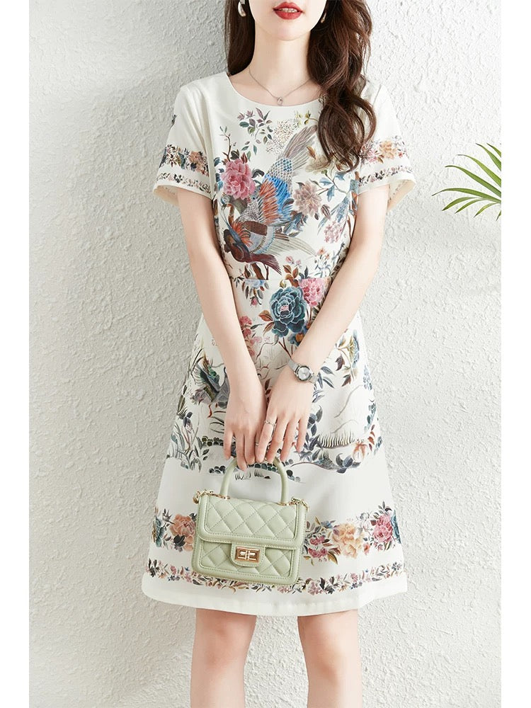 Fashionable and elegant printed dress for women summer 2024 new French style waist slimming temperament celebrity niche a-line skirt