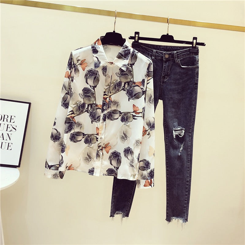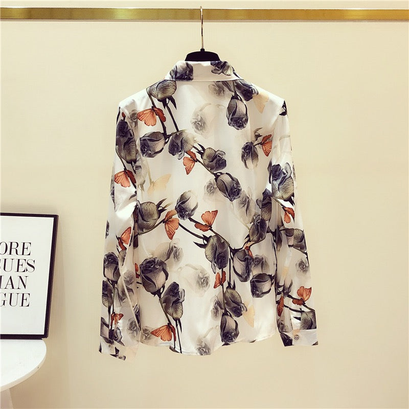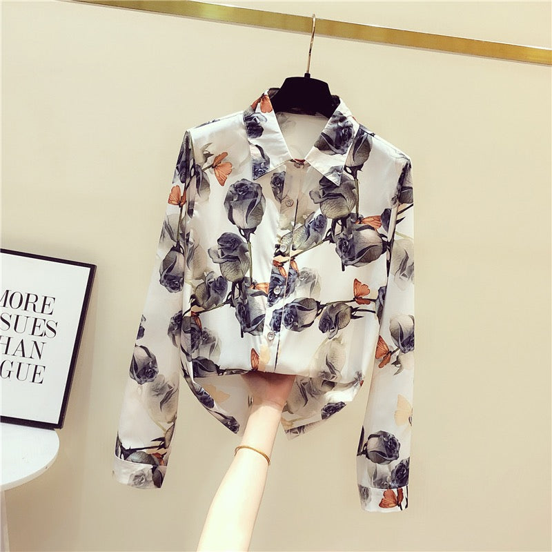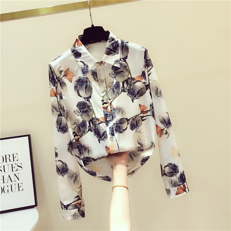 Floral chiffon ladies shirt women 2022 early autumn new bottoming long-sleeved design sense niche tops printed shirts