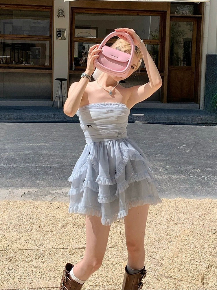 French Hepburn style beautiful princess tube top dress for women summer new hot girl sexy short cake tutu dress