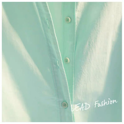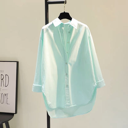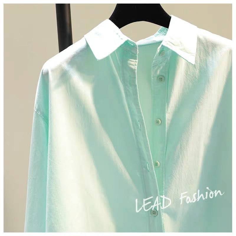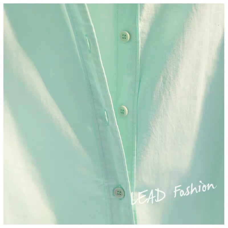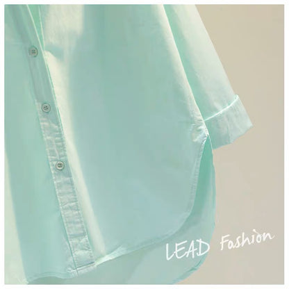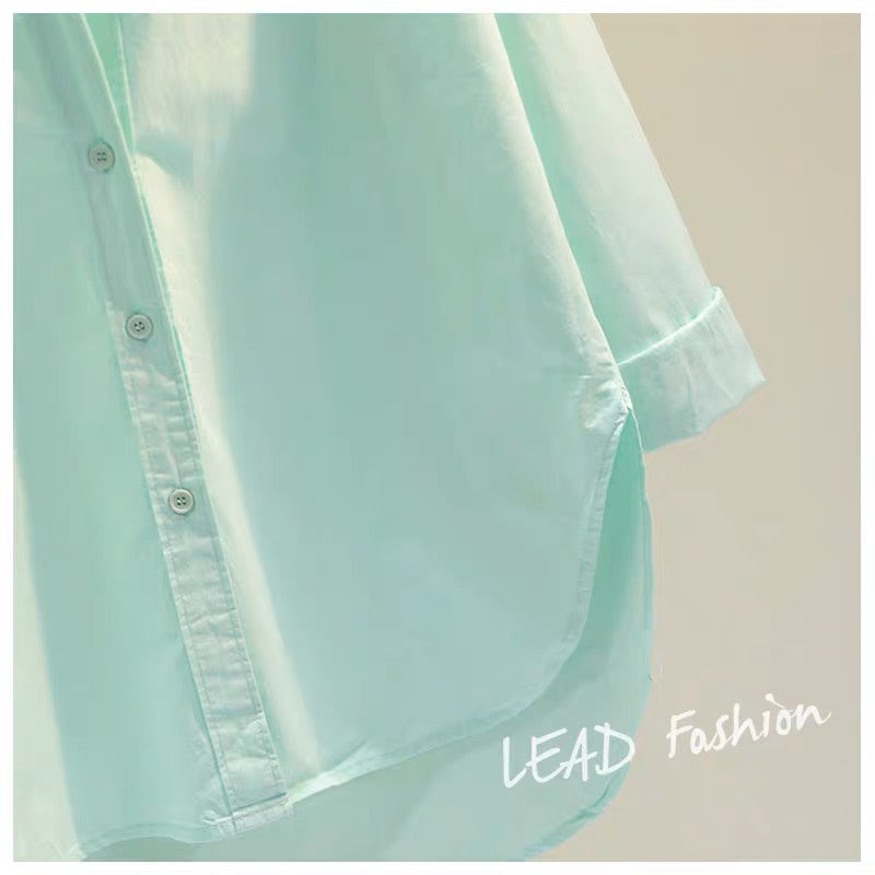 Fruit green mid-length cotton and linen shirt women 2023 spring new Korean version loose casual shirt top cardigan tide