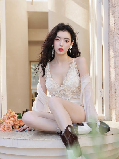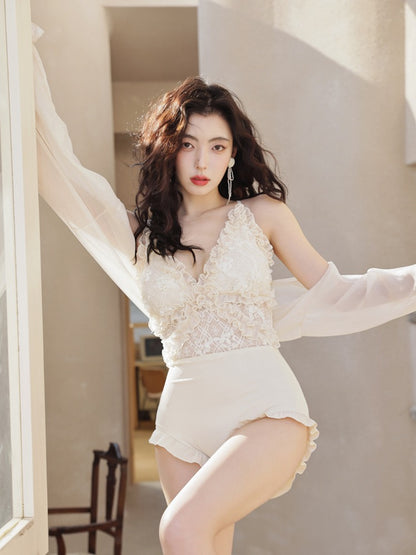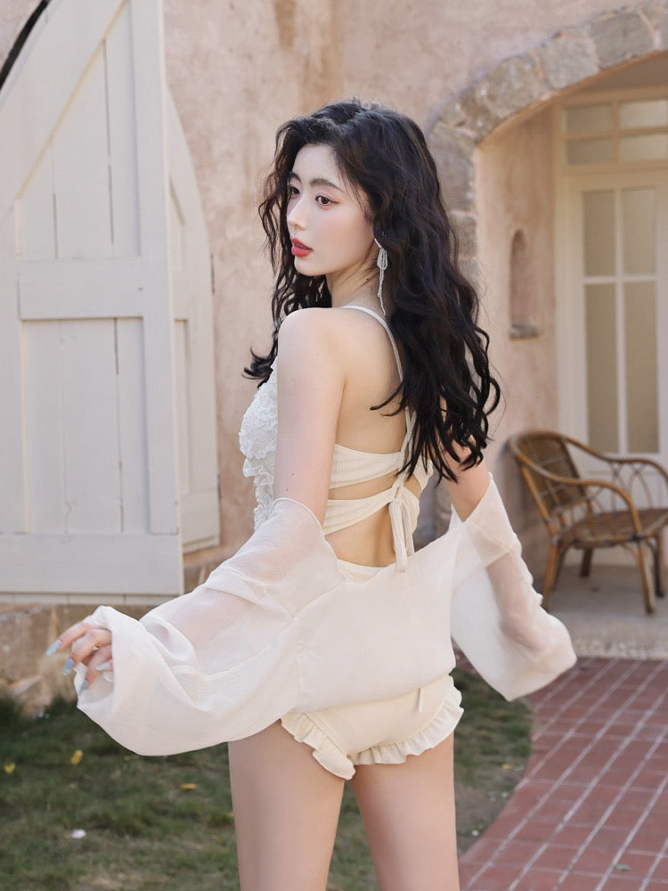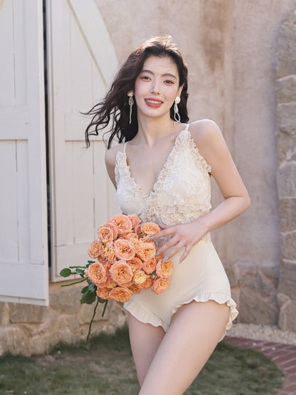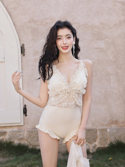 Golden Pearl Swimsuit Ladies 2023 New Conservative Small Chest Covering Belly Showing Thin One-Piece Skirt Two-piece Hot Spring Swimsuit