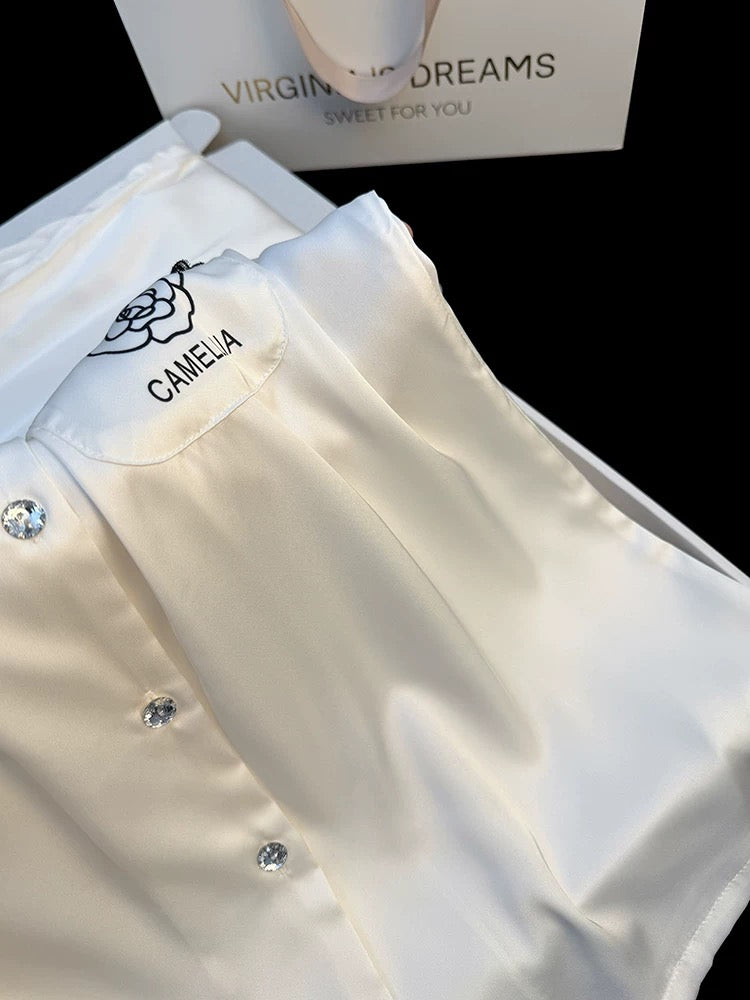 High-grade new pure color camellia ice silk pajamas female soft pure lace lace spring home clothes suit