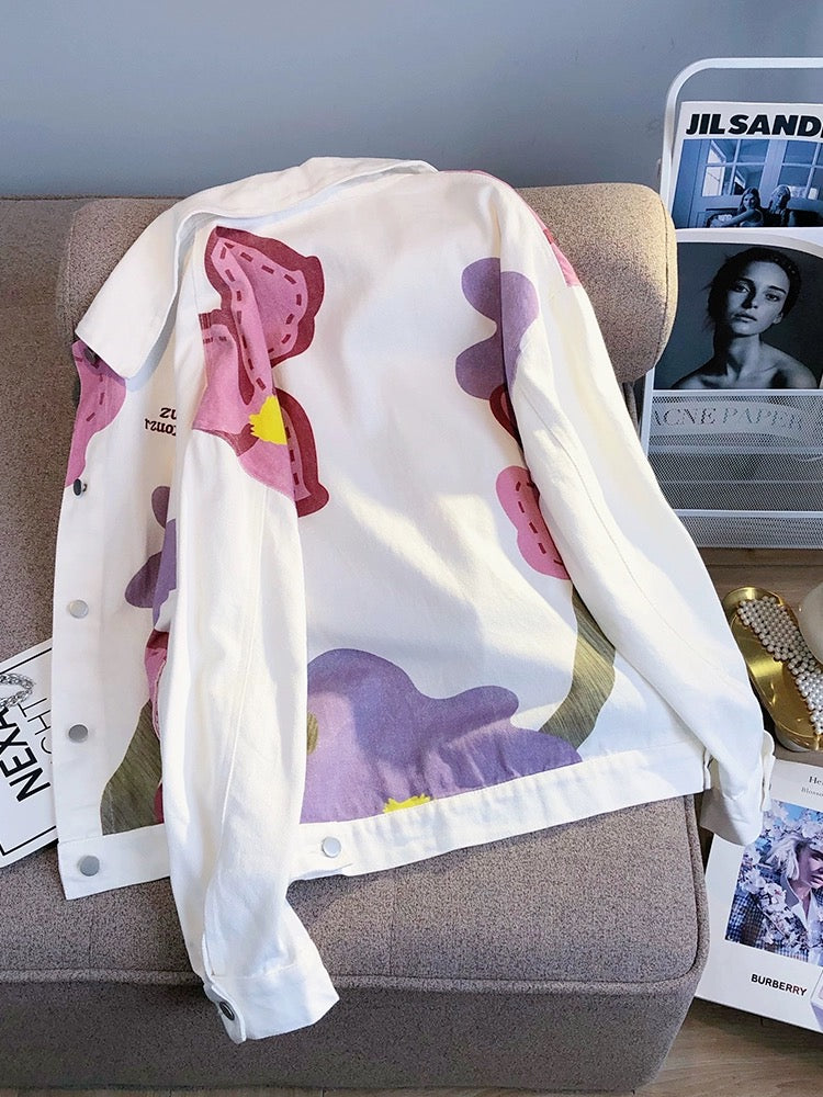 Hong Kong style design niche flower denim jacket for women 2024 autumn new Harajuku style casual loose jacket