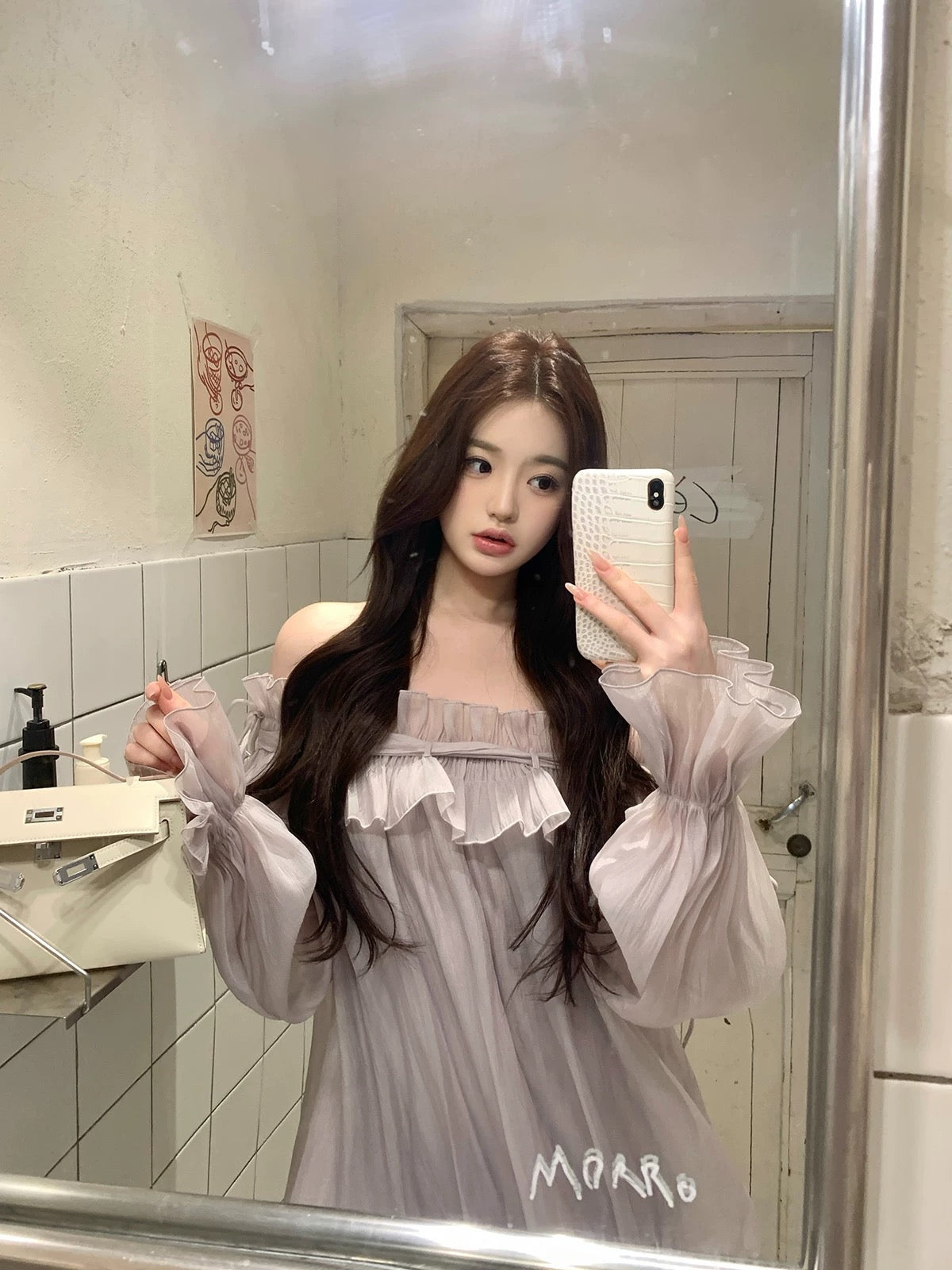 Hotdog is hot! [Smoky Purple] Sweet and gentle off-shoulder long-sleeved dress/skirt