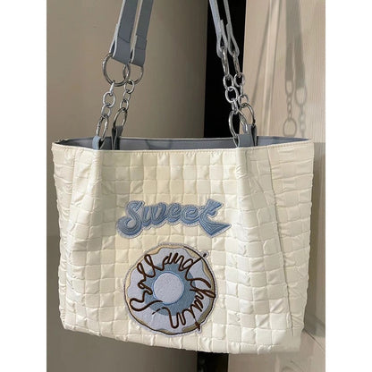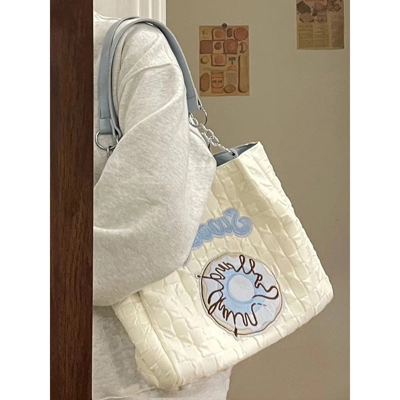 Large-capacity student class shoulder bag female 2022 new trendy fashion donut commuter tote bag shopping bag