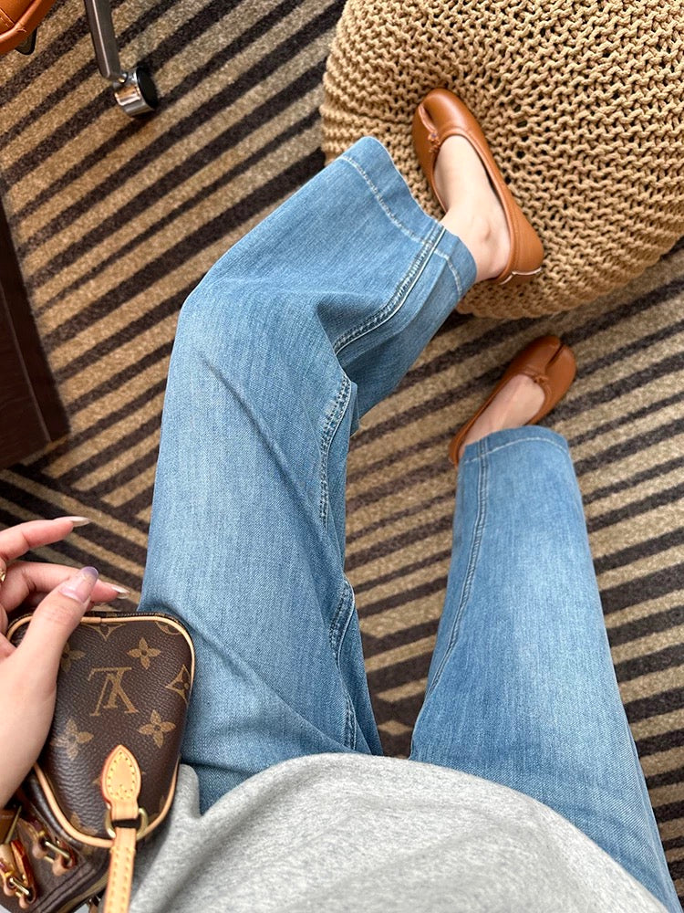 Leg shape cheating pants~! High waist wide leg granny pants women's summer new lyocell stretch nine-point jeans
