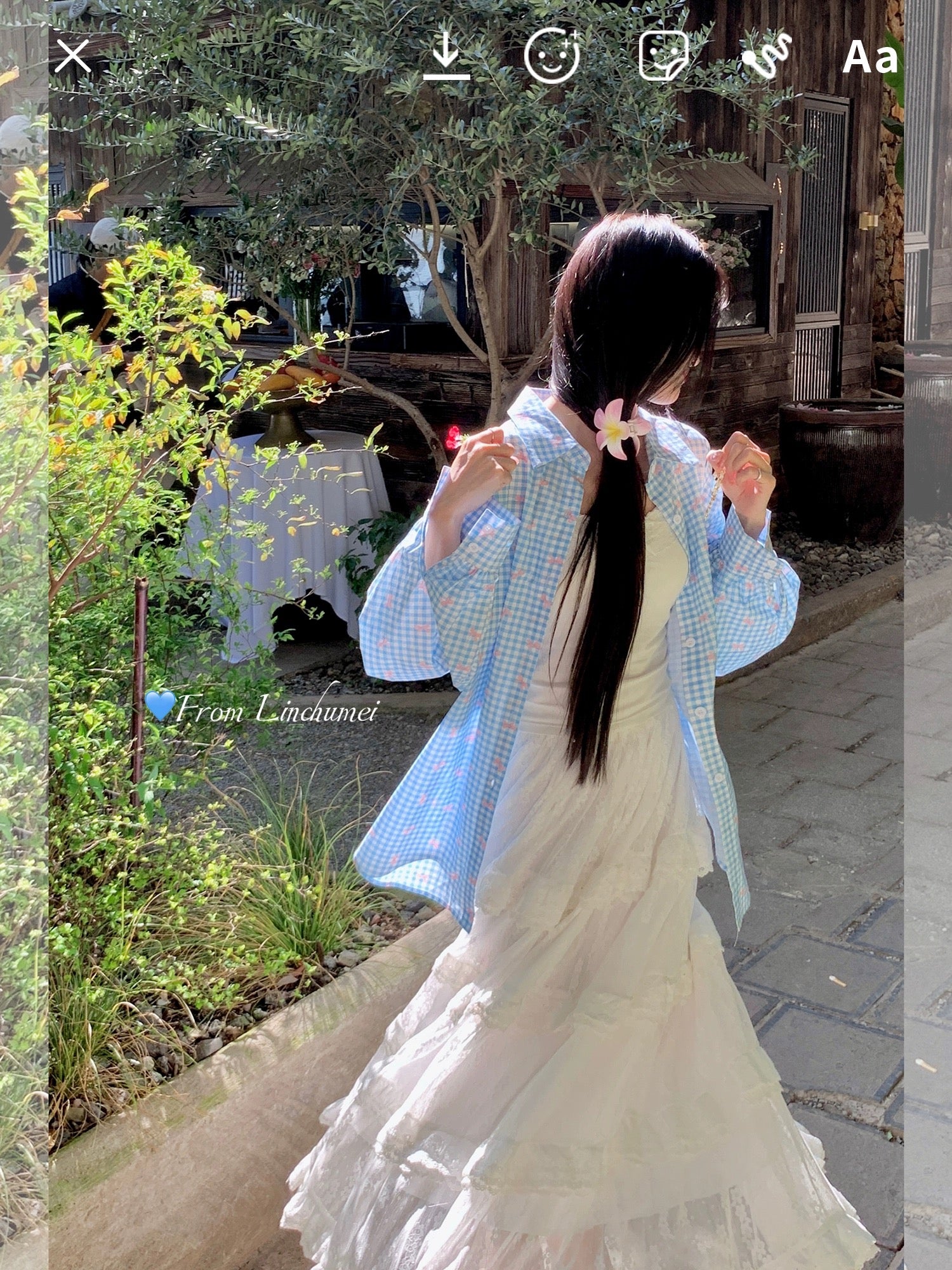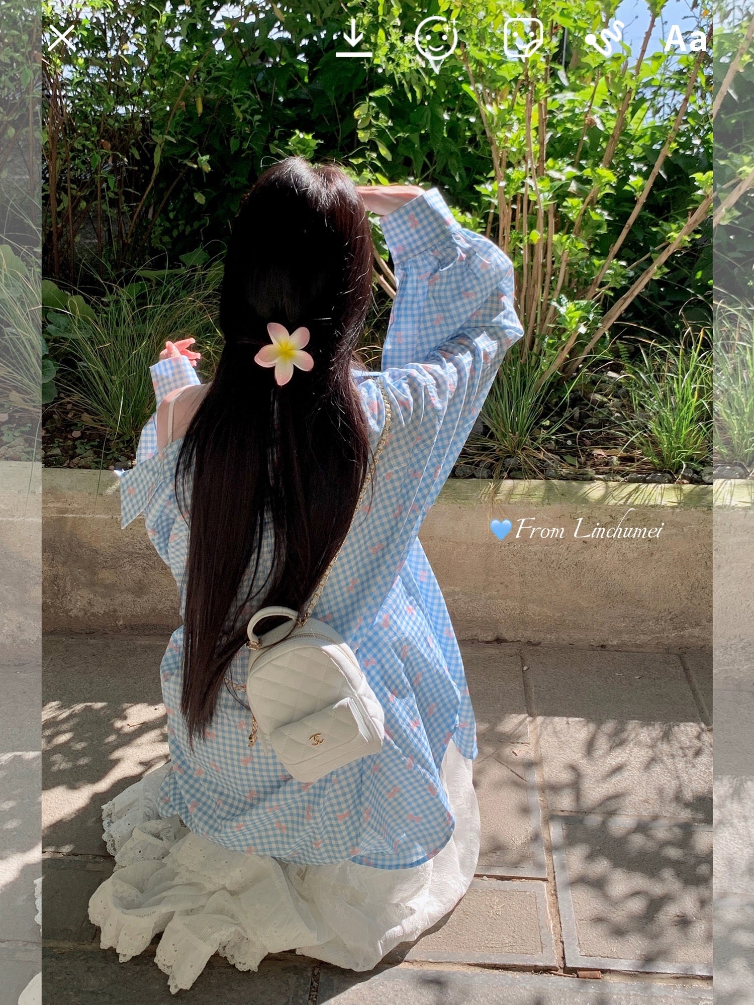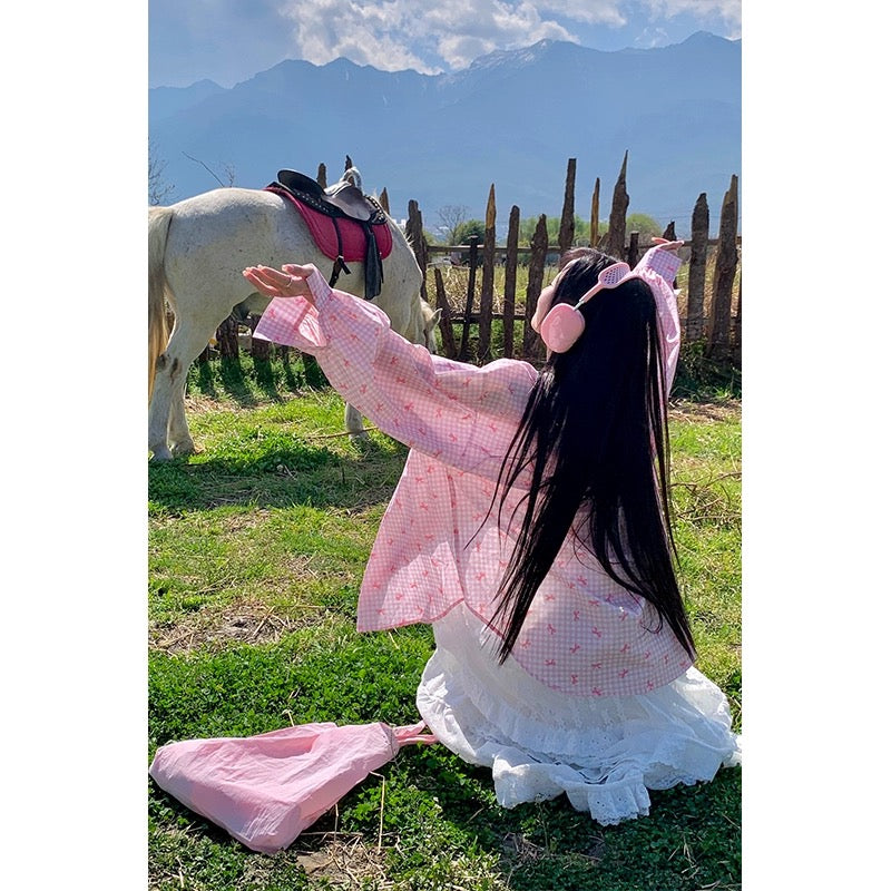 Lin Chumei pink plaid shirt jacket women's spring and summer Korean loose thin cardigan bow sun protection top