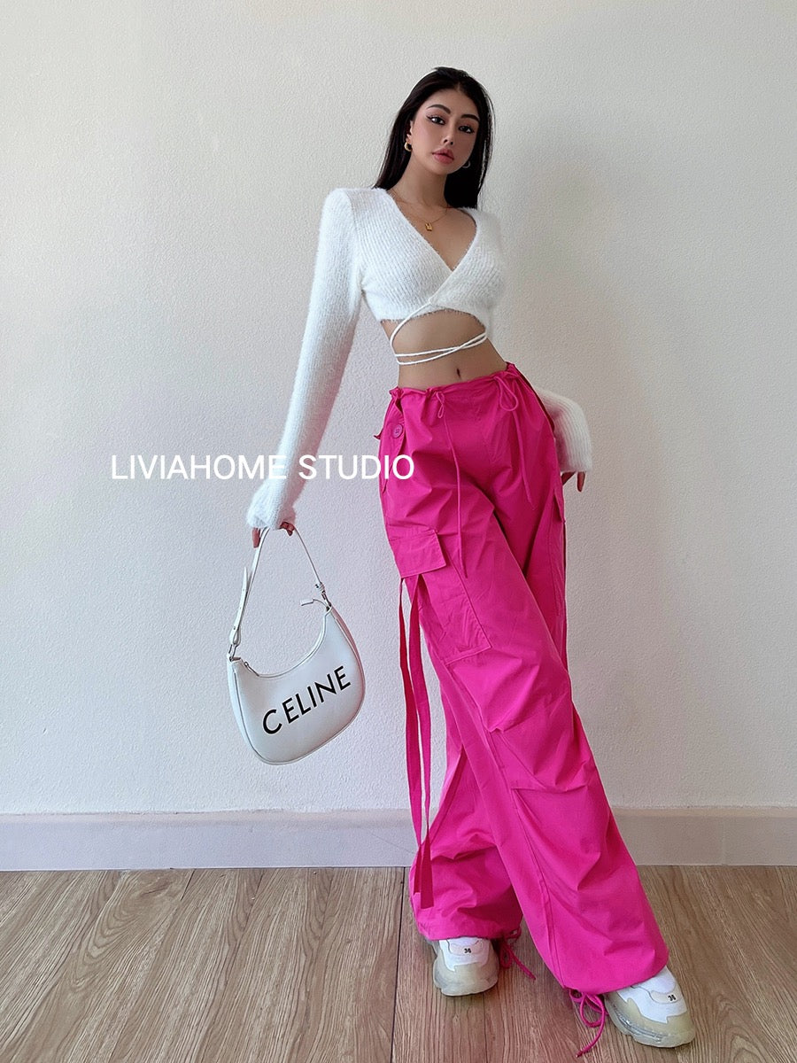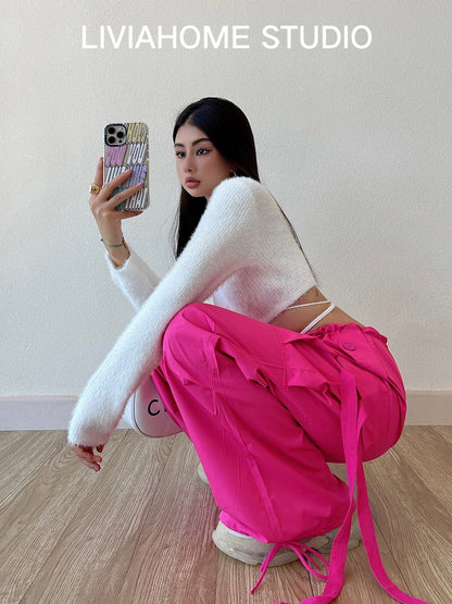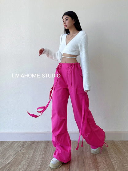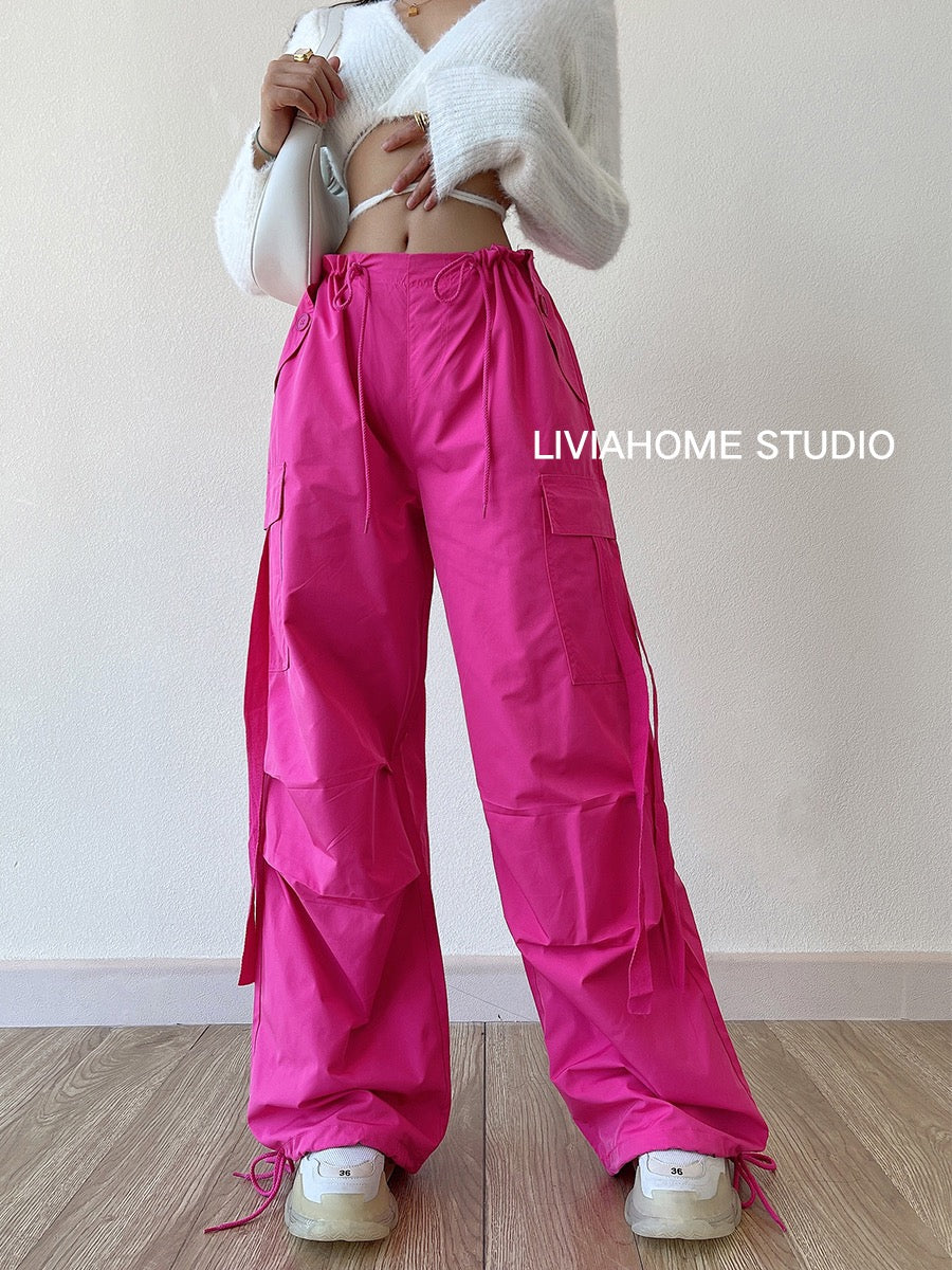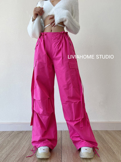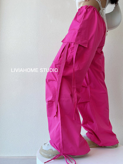 liviahome eye-catching pink overalls European and American hot girls street fashion high waist casual loose wide-leg pants women