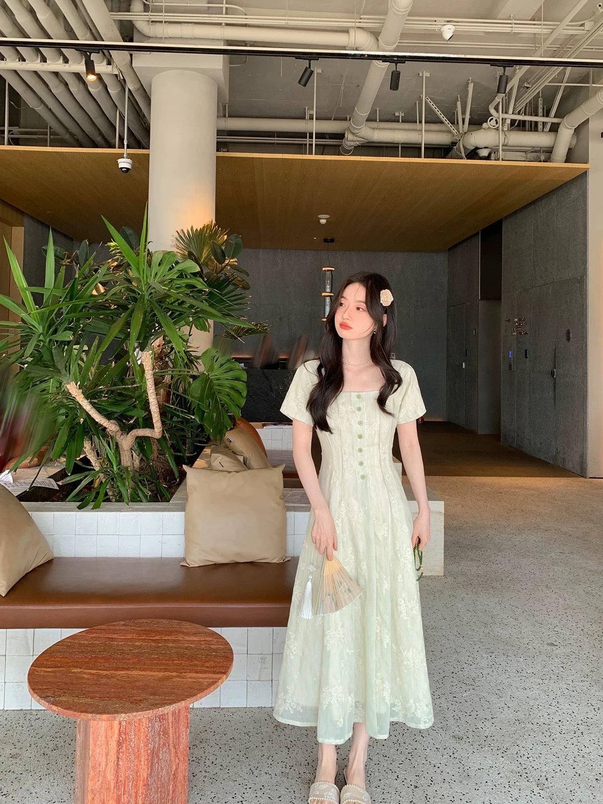 Miss Chipmunk Designer Dress Private Collection Square Neck Dress Summer Women's Artistic Everyday Long Dress