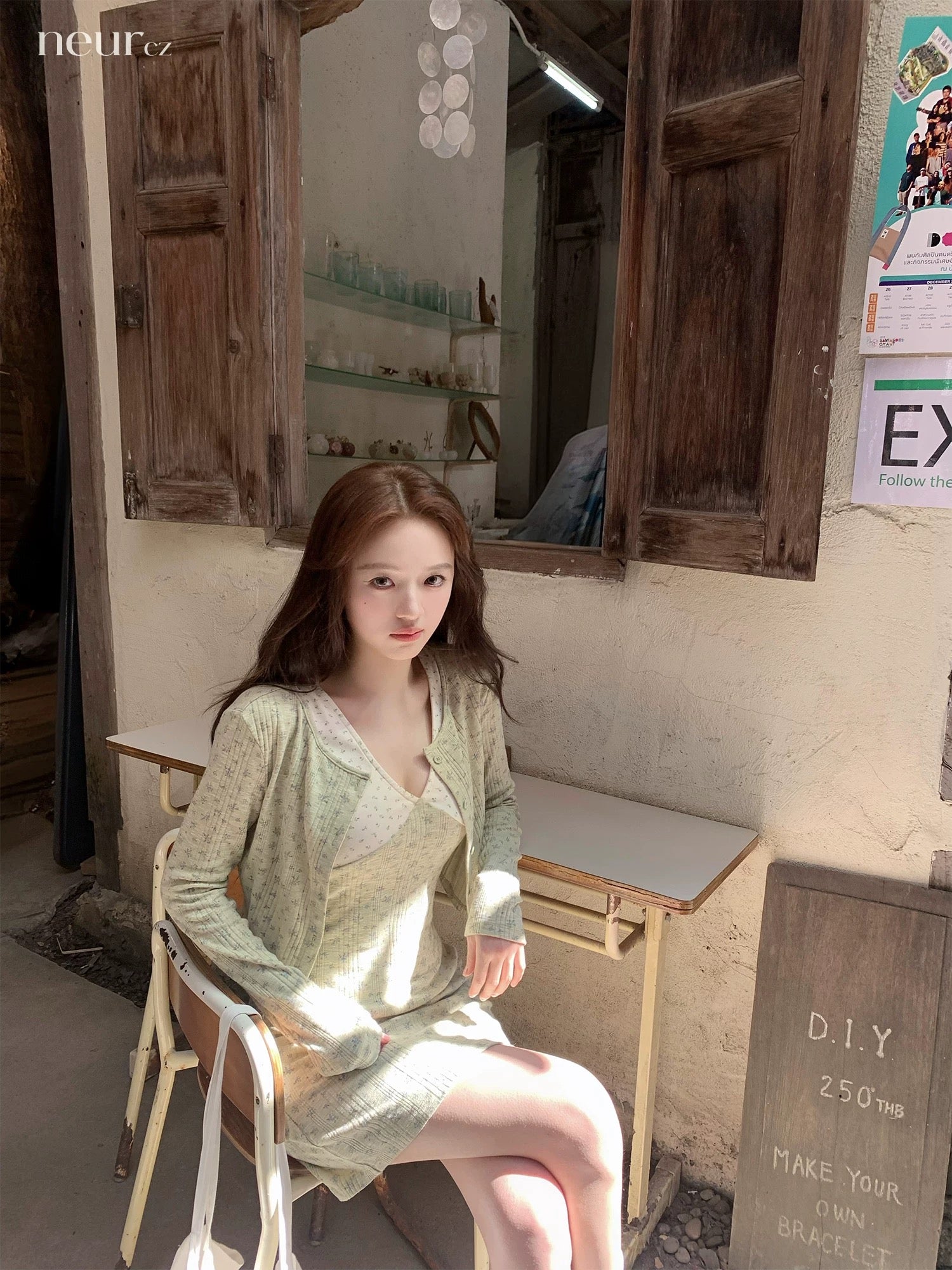 neurcz Knitted V-neck Short Color-blocked Floral Dress Women's Spring Short Cardigan Slimming Waist Two-Piece Set