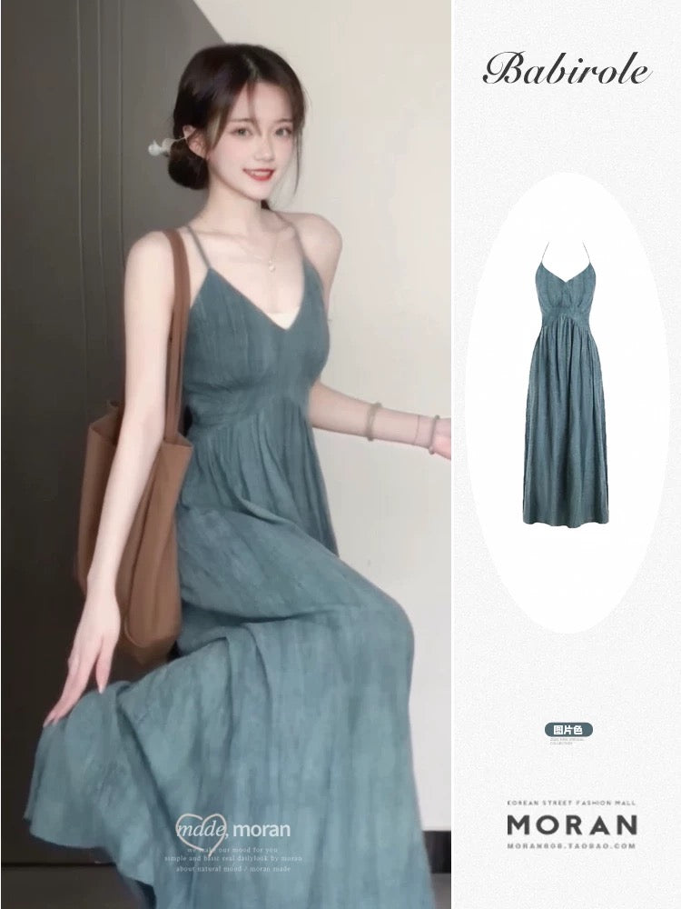 New Chinese style, cool and elegant halter-neck dress, slimming and sophisticated, perfect for summer. Retro Chinese style, waist-cinching, V-neck long dress.