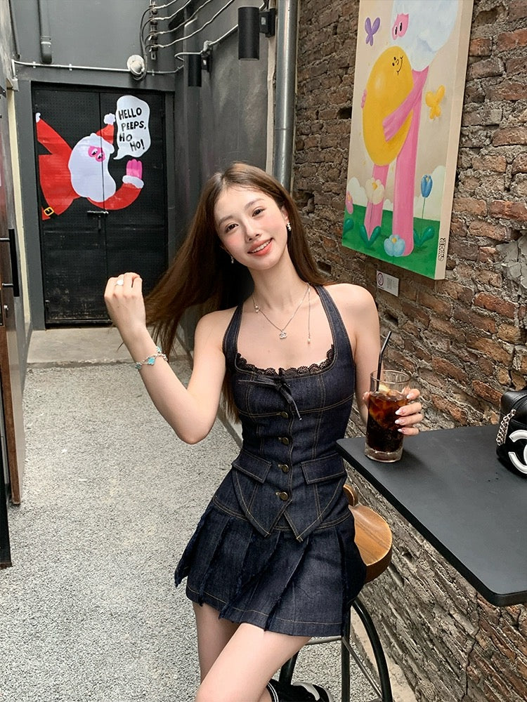 NIMO WANG denim suit for women 2024 new summer dress with a complete set of fashionable two-piece suit skirt