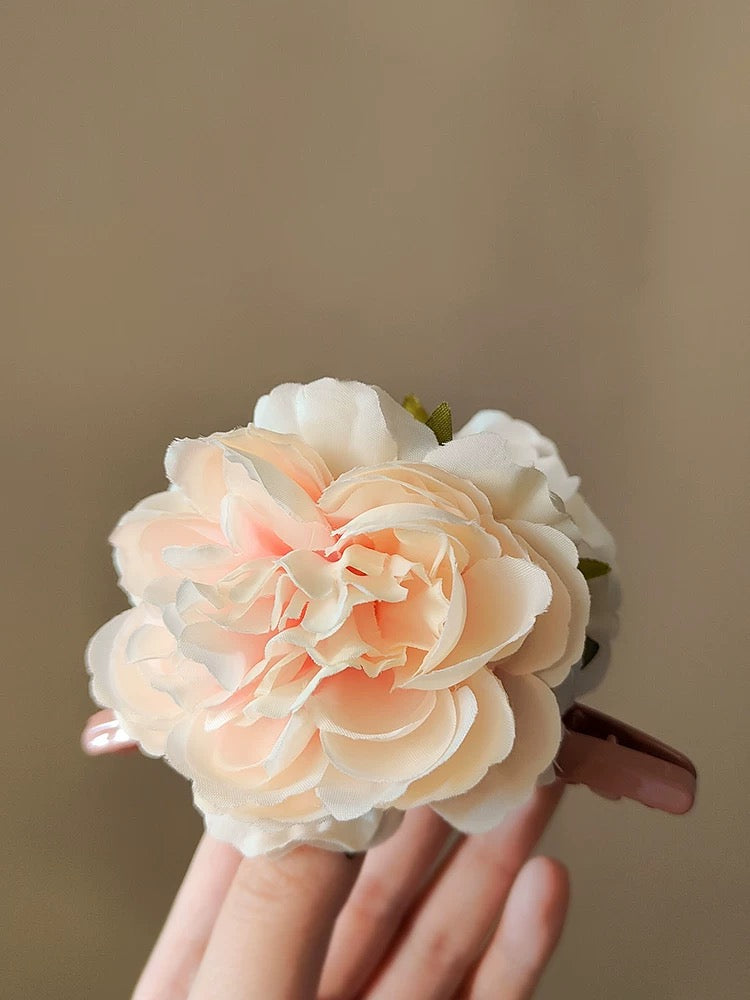 Pink cherry blossoms! Pink peony flower clips! Temperament sweet flower shark clips back of the head hairpins for women