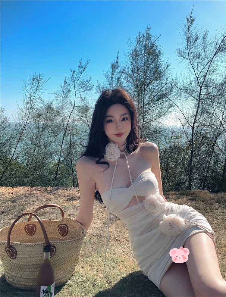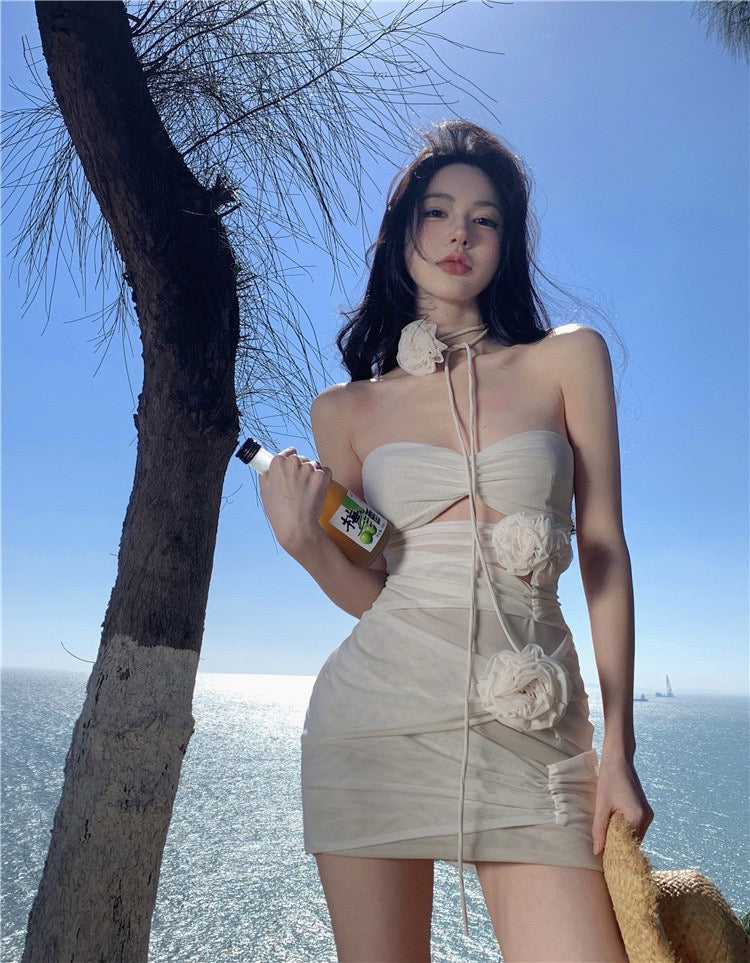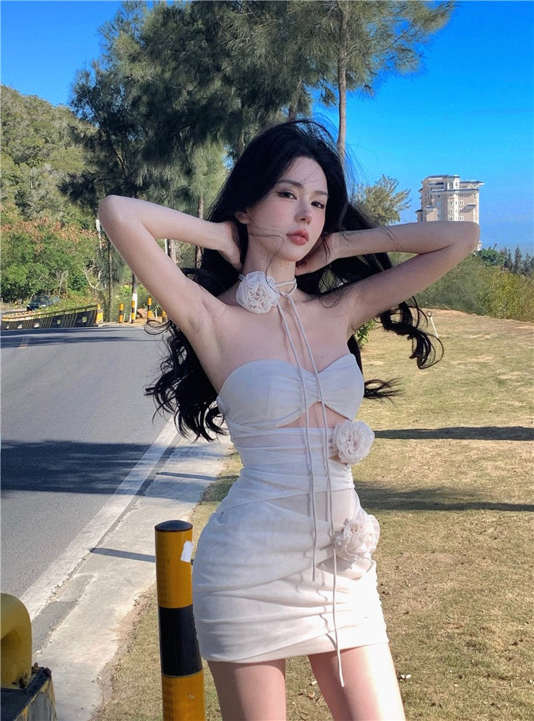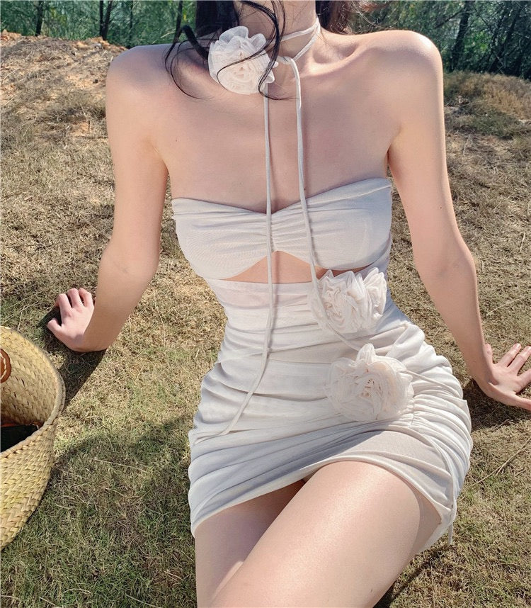 Pure desire flower tube top dress female summer hot girl rose chic unique skirt sexy mesh bag hip skirt