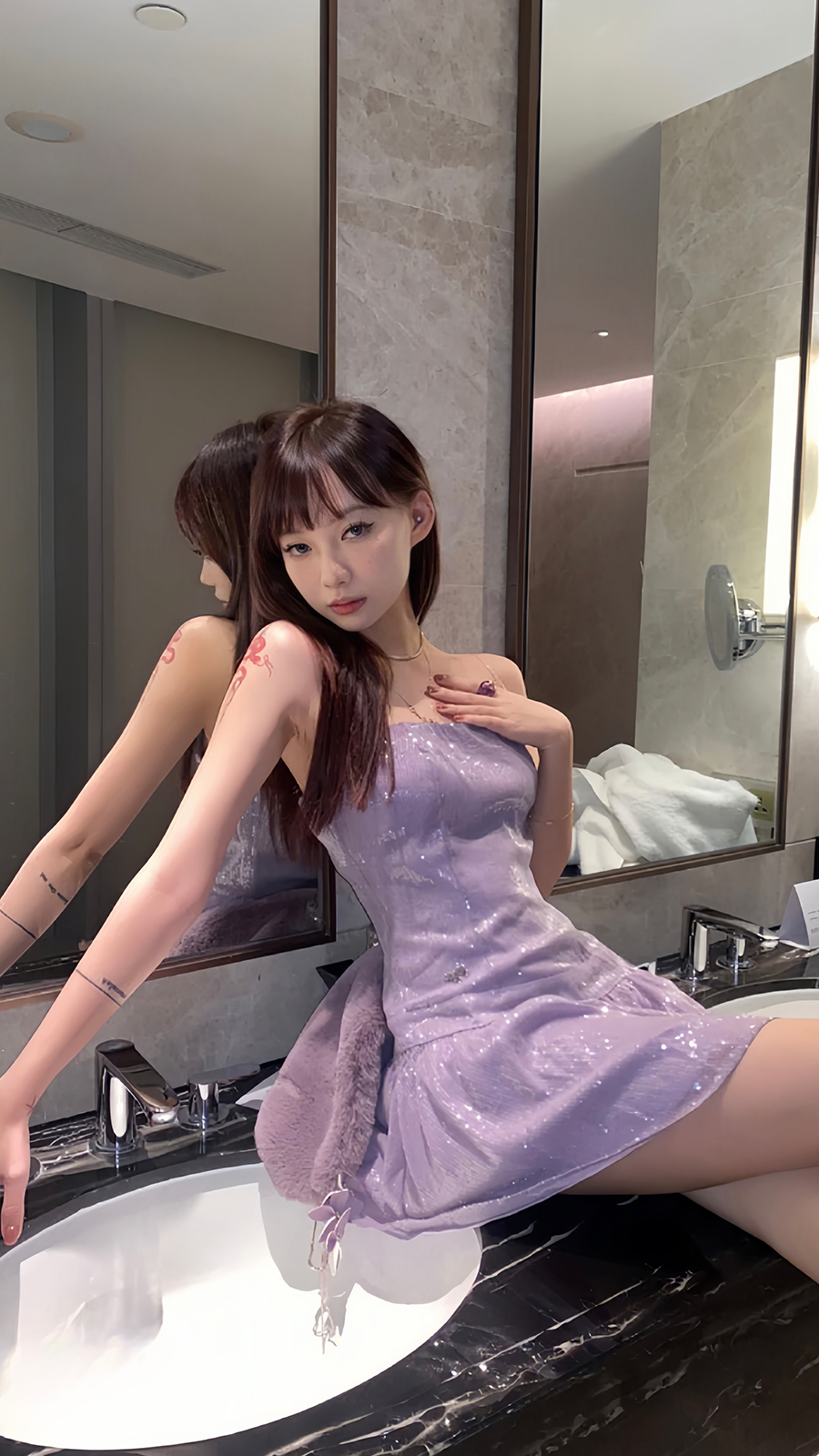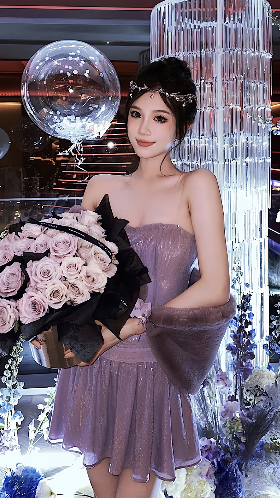 Pure Desire Limited Hot Girl Light Smoke Purple Sexy Sequin Embroidery Shiny Tube Top Dress
