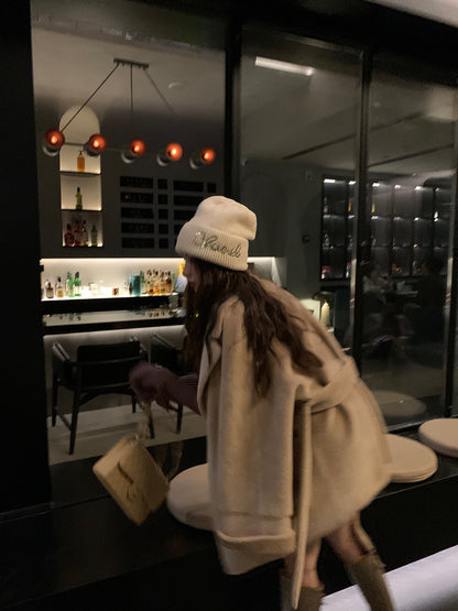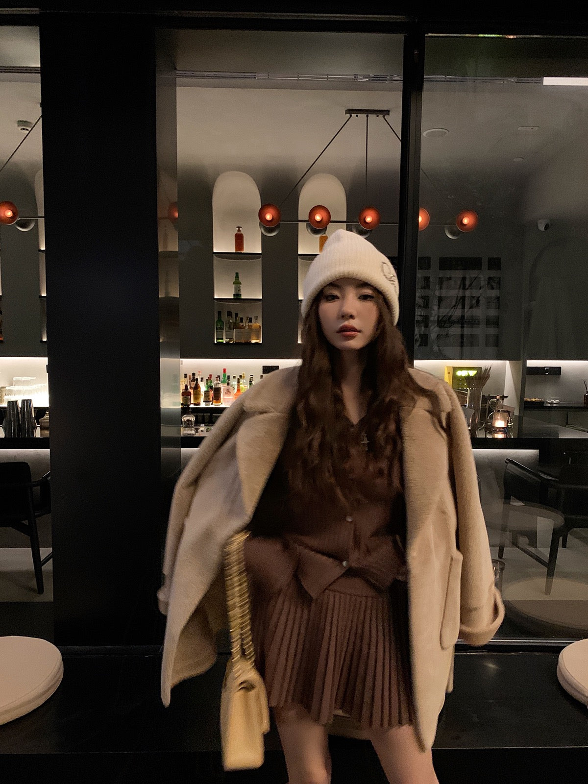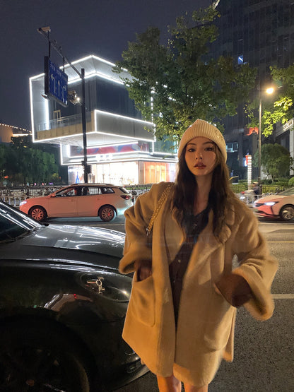 Qiu Rouyao winter new Korean version thinner solid color straight double-sided woolen coat thickened plus fluffy woolen coat for women