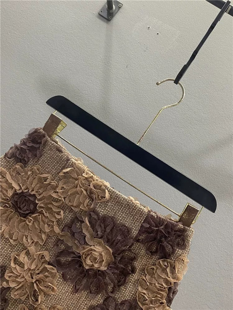 Retro 3D Floral Wool Skirt for Women, 2025 Autumn/Winter New Style, Youthful, High-Waisted, Slimming A-Line Bodycon Mini Skirt